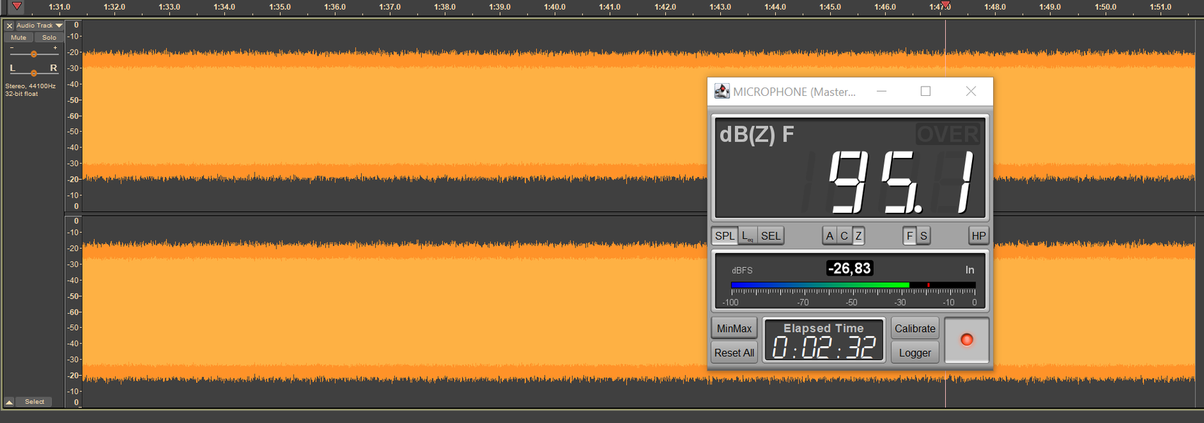 Производитель обещает до 7 часов работы наушников от одной зарядки аккумуляторов. На деле все примерно так и получилось. Напомним нашу методику тестирования автономности беспроводных наушников. Безопасным уровнем звукового давления при прослушивании музыки считается 75 дБ, но на практике большинство слушателей предпочитает уровень 90-100 дБ. Мы транслируем в наушники белый шум, фиксируя уровень SPL в районе 95 дБ, сразу после старта воспроизведения запускаем запись сигнала с измерительного стенда — по длине получившегося трека легко понять, сколько проработал каждый из наушников.