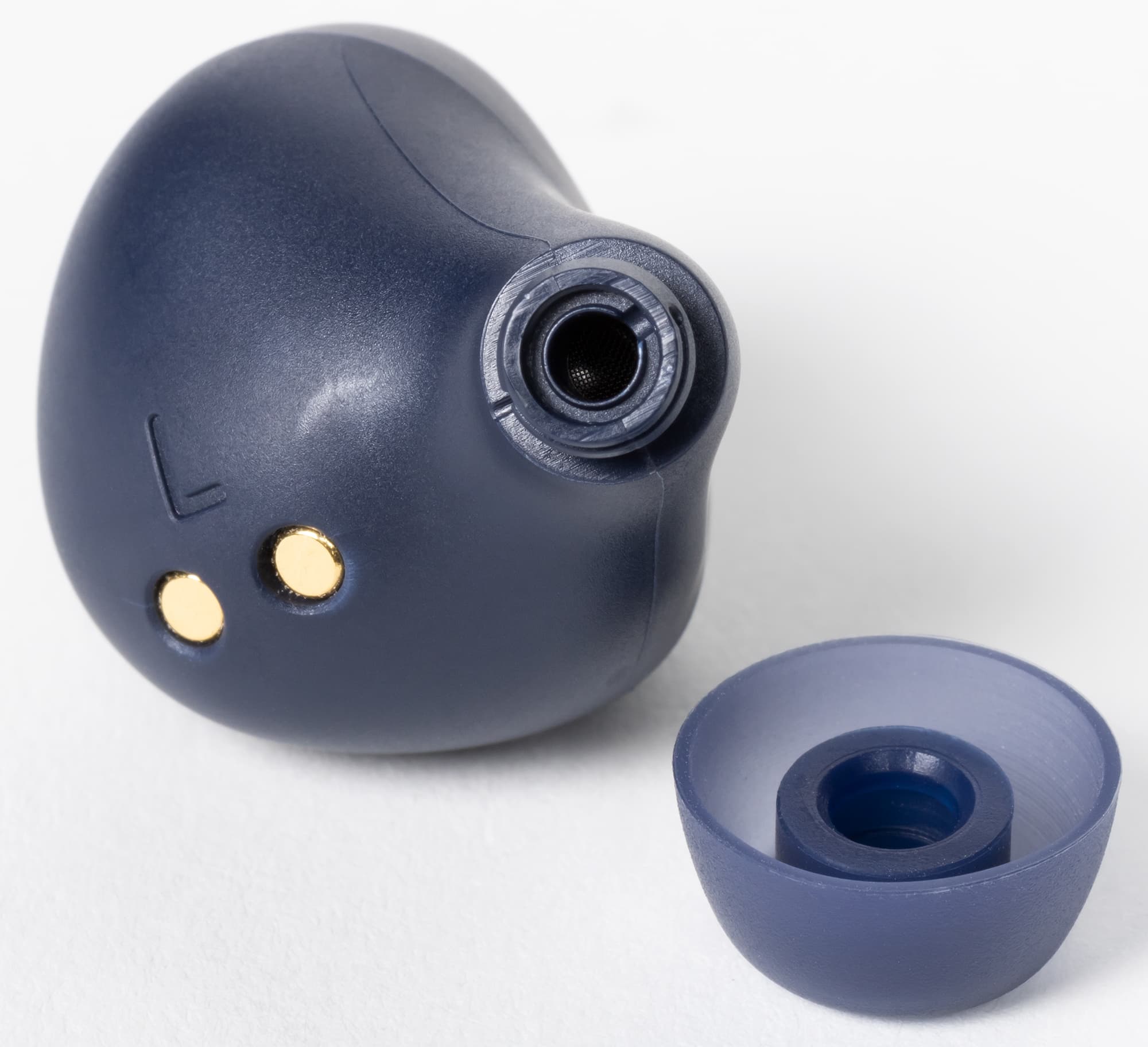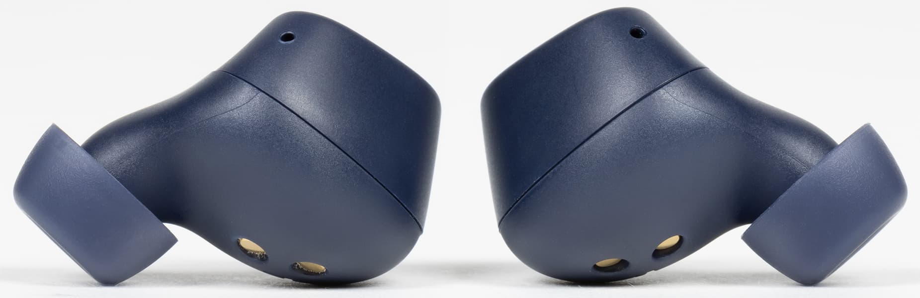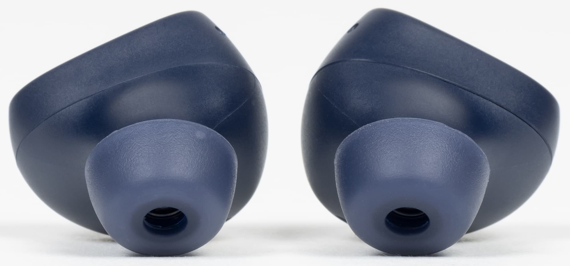 Наушники легкие — весят всего 4,3 г, при этом очень компактные, потому в ушах почти не ощущаются. Внутренняя часть корпуса имеет довольно сложную эргономичную форму, обеспечивающую отличный контакт с полостью ушной раковины. Надевать наушники лучше слегка «вкручивая» их в ухо до того момента, когда посадка будет наиболее плотной и комфортной — стоит попробовать сделать это пару раз, как станет понятно, о чем идет речь.