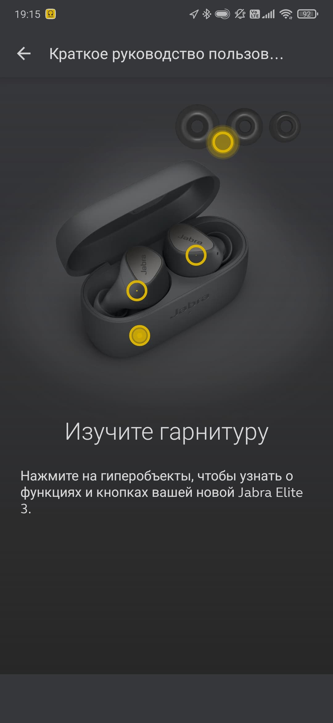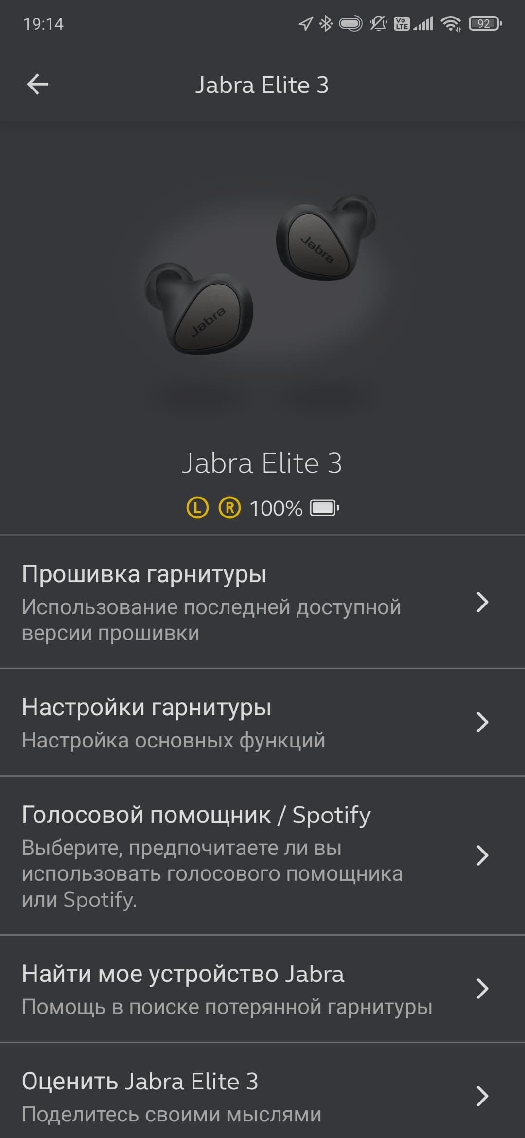 Управление не настраивается — чтобы получить эту возможность, придется приобрести одну из флагманских гарнитур Jabra. Профиль по умолчанию при этом вполне логичный, но при этом не без нюансов. Так, например, двойное нажатие левой кнопки ведет к запуску Spotify или голосового ассистента, потому для перехода к предыдущему треку пришлось задействовать тройной клик правой. Но это все же не самая часто используемая функция — привыкнуть можно легко. Вот как выглядит управление при воспроизведении: