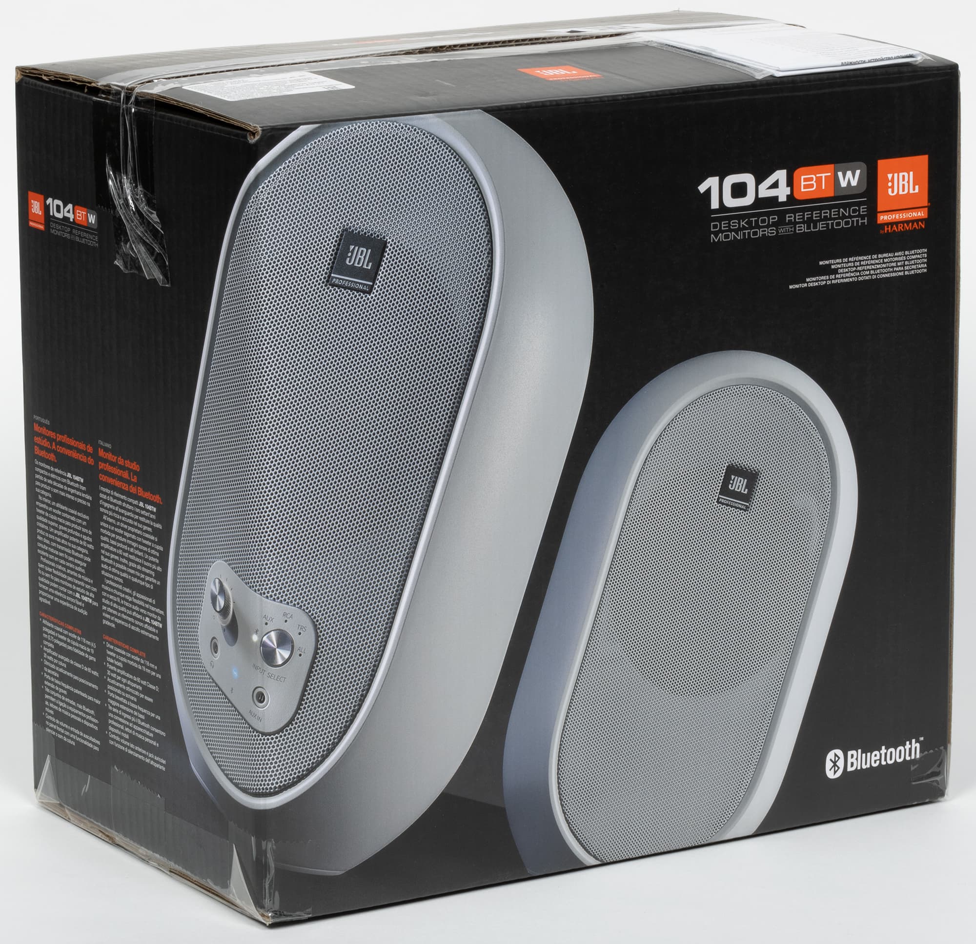 Помимо уже упомянутого Bluetooth присутствуют еще три набора входов и выход на наушники, заявленные параметры тоже впечатляют, особенно с учетом габаритов. При этом акустика займет минимум места на столе в домашней студии или даже где-то на выездных сессиях — размеры JBL 104-BT вполне позволяют при необходимости брать ее с собой. Благодаря элегантному дизайну она прекрасно впишется в практически любое пространство, что для многих пользователей тоже является немаловажным фактором. В общем, потенциально устройство очень интересное — посмотрим, на что оно способно.