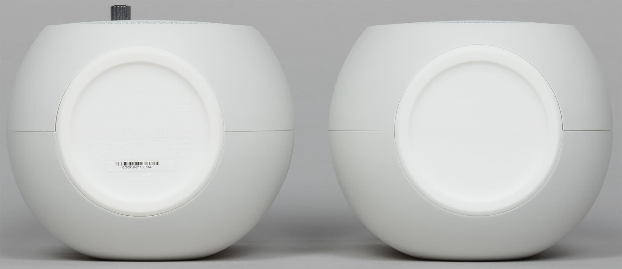Акустика JBL 104-BT выпускается в двух цветах — черном и белом, у нас на тестировании был второй. Оформление минималистичное, но при этом смотрятся колонки эффектно.