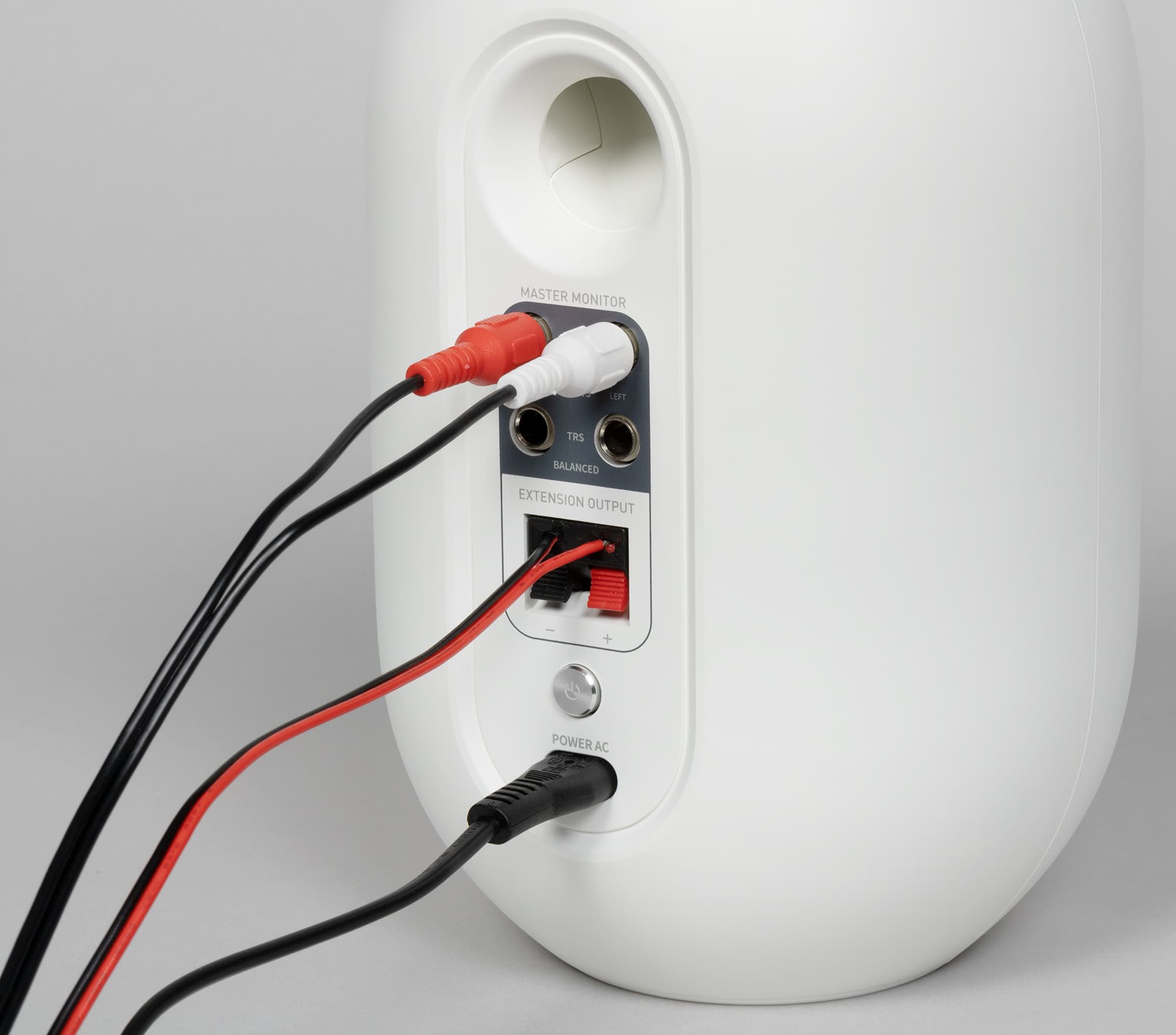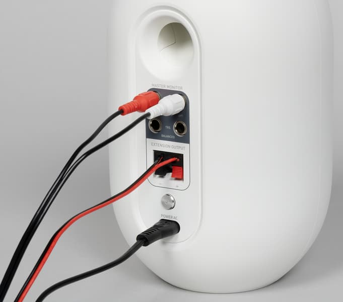 Первым делом соединяем колонки с помощью идущего в комплекте кабеля, который зажимаем в клеммы, соблюдая полярность. Далее присоединяем кабель питания к активной колонке, остается подключить источник звука. Для этого на задней панели есть RCA-входы, а в комплекте — кабель RCA—миниджек. Собственно, ими и стоит воспользоваться в подавляющем большинстве случаев. Если есть такое желание, можно предпочесть TRS-разъемы для балансного подключения, но кабель придется докупать отдельно.