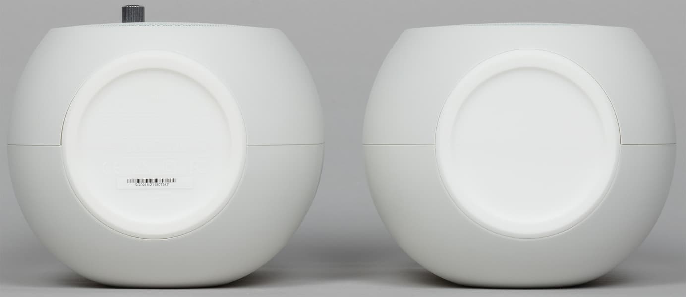 На дне колонок размещены силиконовые накладки, которые не дают им скользить по столу и поглощают небольшую часть вибраций.