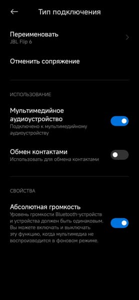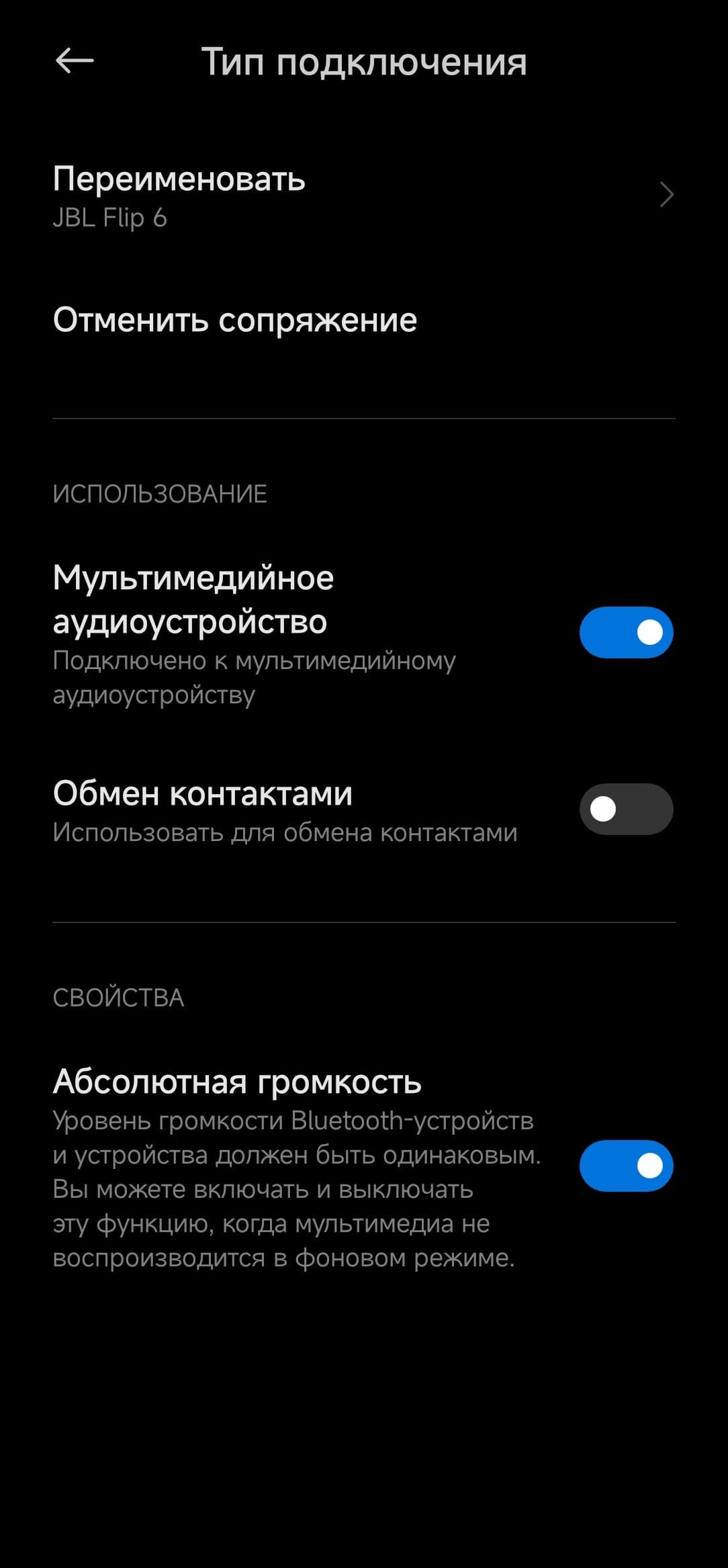 Далее возвращаемся на вкладку колонки, в верхней части которой можно увидеть уровень зарядки встроенного аккумулятора и переименовать устройство. Но нас тут, конечно, больше интересует эквалайзер. Пусть полосы всего три, но у большинства знакомых нам Bluetooth-колонок эквалайзера нет вообще, так что это явно не повод для критики. Возможности хоть немного подстроить звук под себя в данном случае можно только порадоваться.