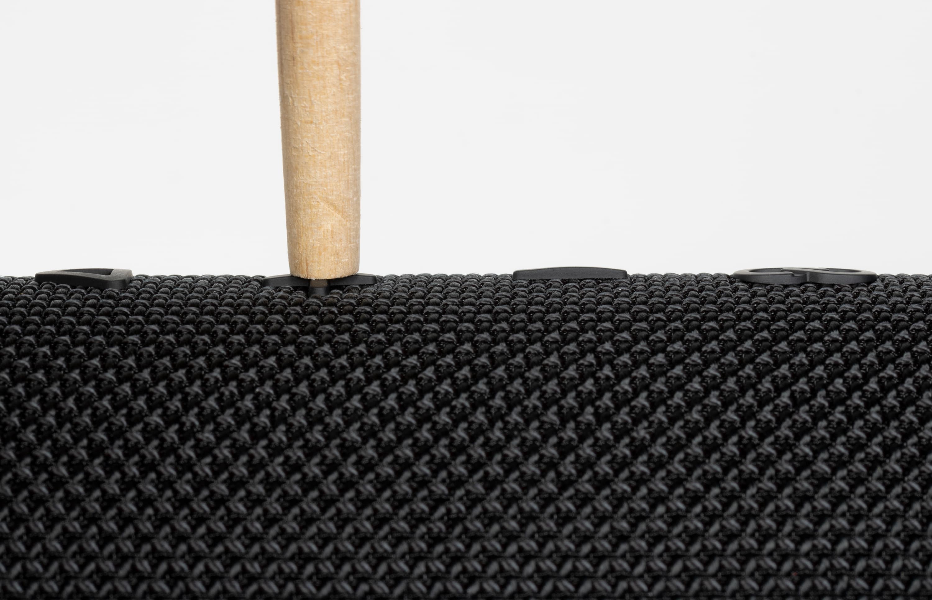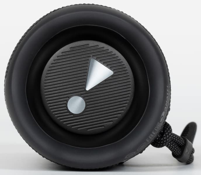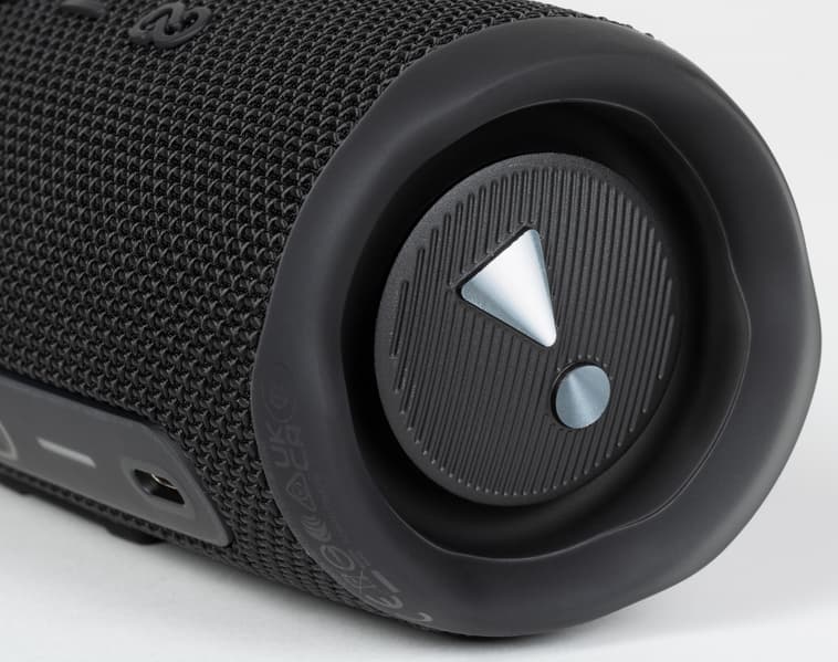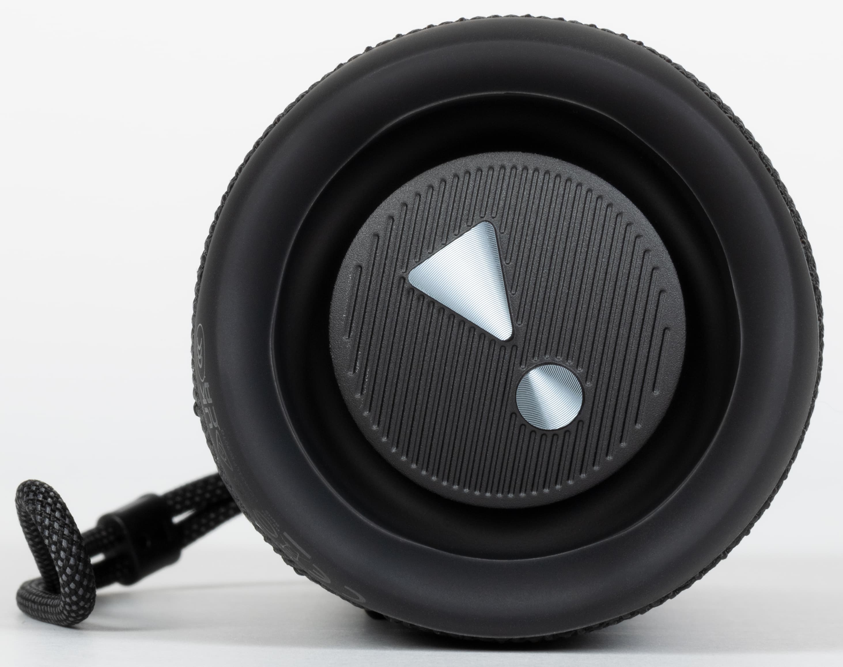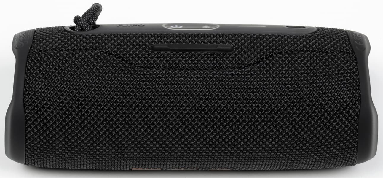 Рядом с задней панелью размещен небольшой резиновый элемент, не дающий JBL Flip 6 кататься по столу или другой поверхности при горизонтальном размещении.