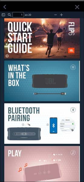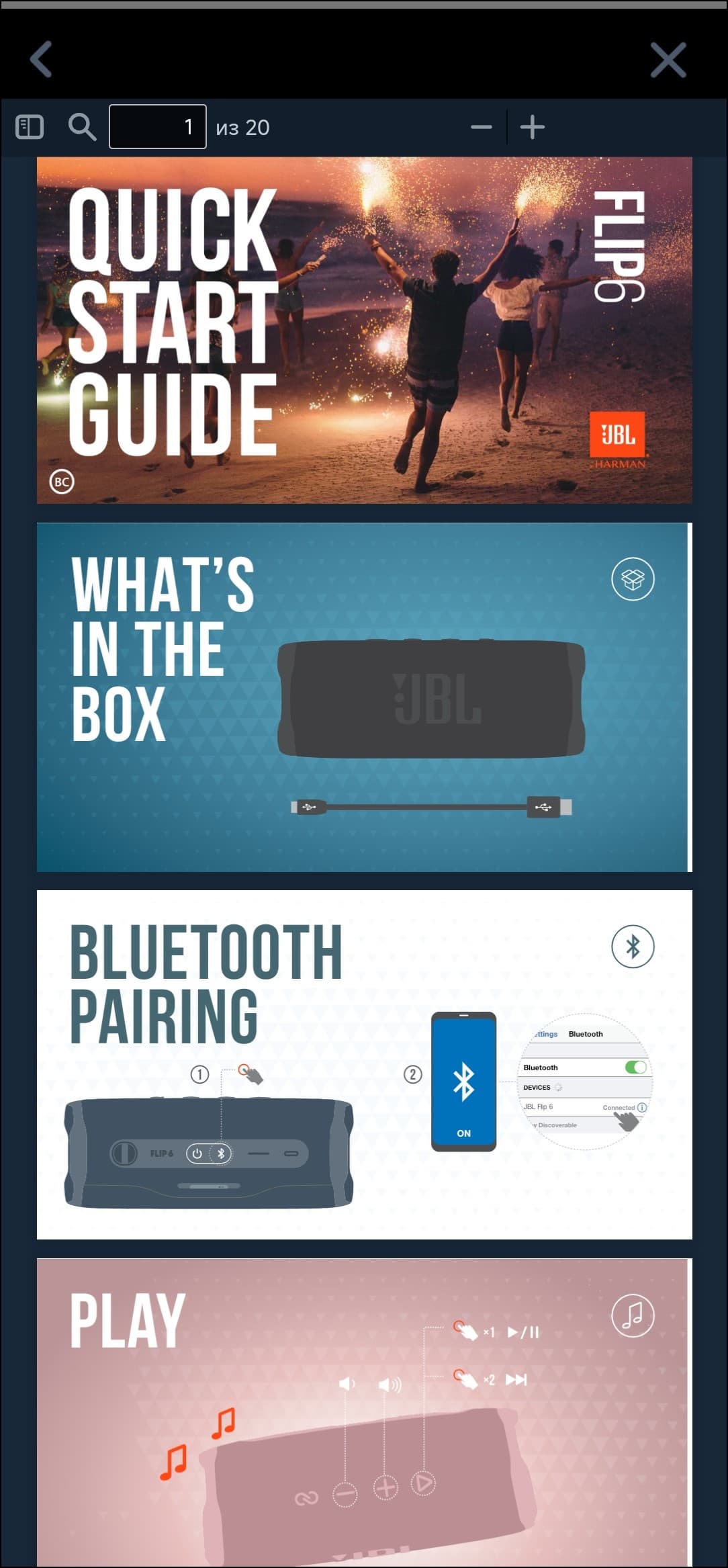 Колонка поддерживает параллельное подключение двух источников звука для попеременной трансляции с них сигнала. А благодаря технологии PartyBoost можно объединить в сеть для совместного воспроизведения неограниченное количество совместимых устройств или создать стереопару. Для управления «продвинутыми» функциями JBL Flip 6 и просто большего удобства необходимо скачать и установить программу JBL Portable — будем считать это последним этапом подготовки устройства к работе.