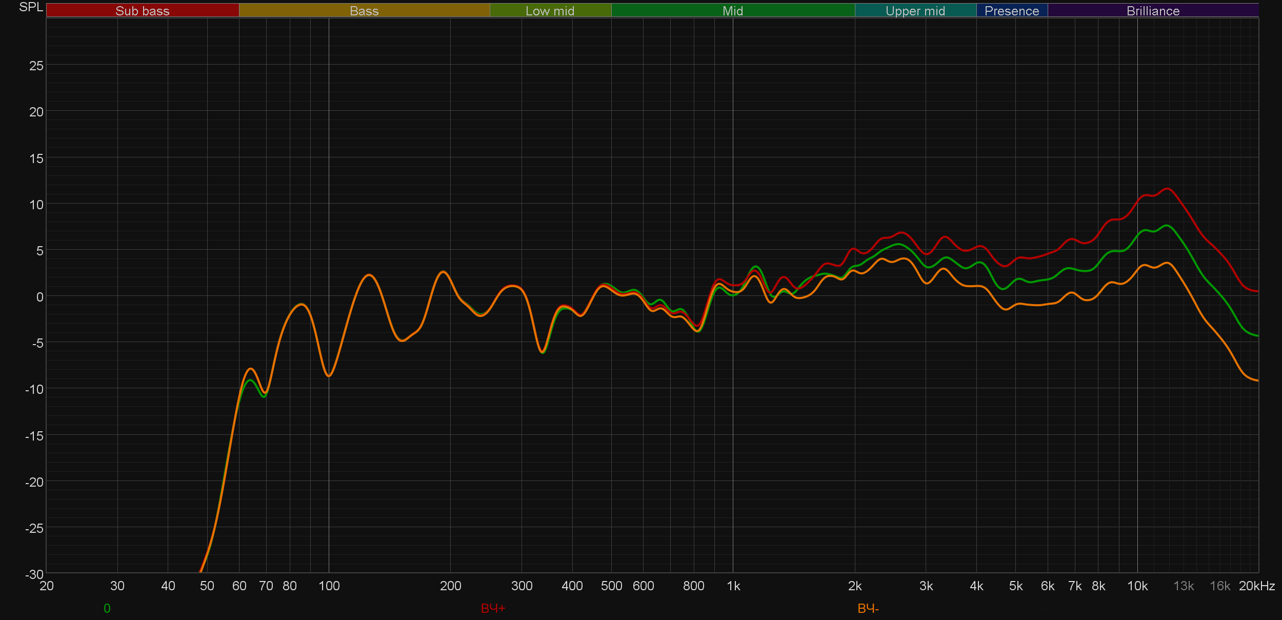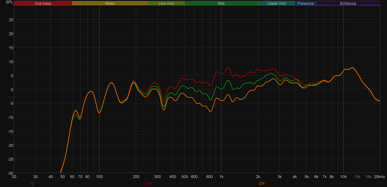 В среднечастотном диапазоне эквалайзер работает куда эффективнее, причем в обе стороны. При большом желании можно подчеркнуть бас, слегка «провалив» средние и высокие частоты, но это решение для самых убежденных басхедов.