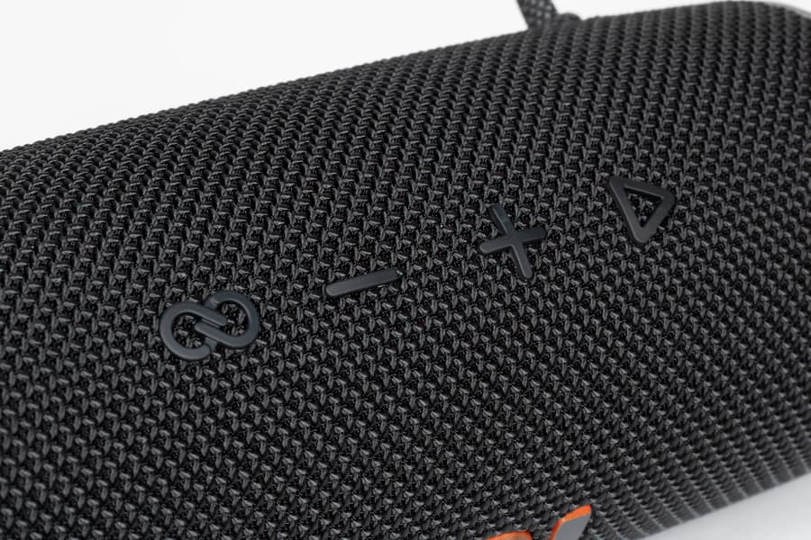 По периметру колонка обтянута тканью, которая оказалась устойчивой к загрязнению и легко очищаемой. На передней поверхности размещены кнопки управления воспроизведением, громкостью и режимом PartyBoost.