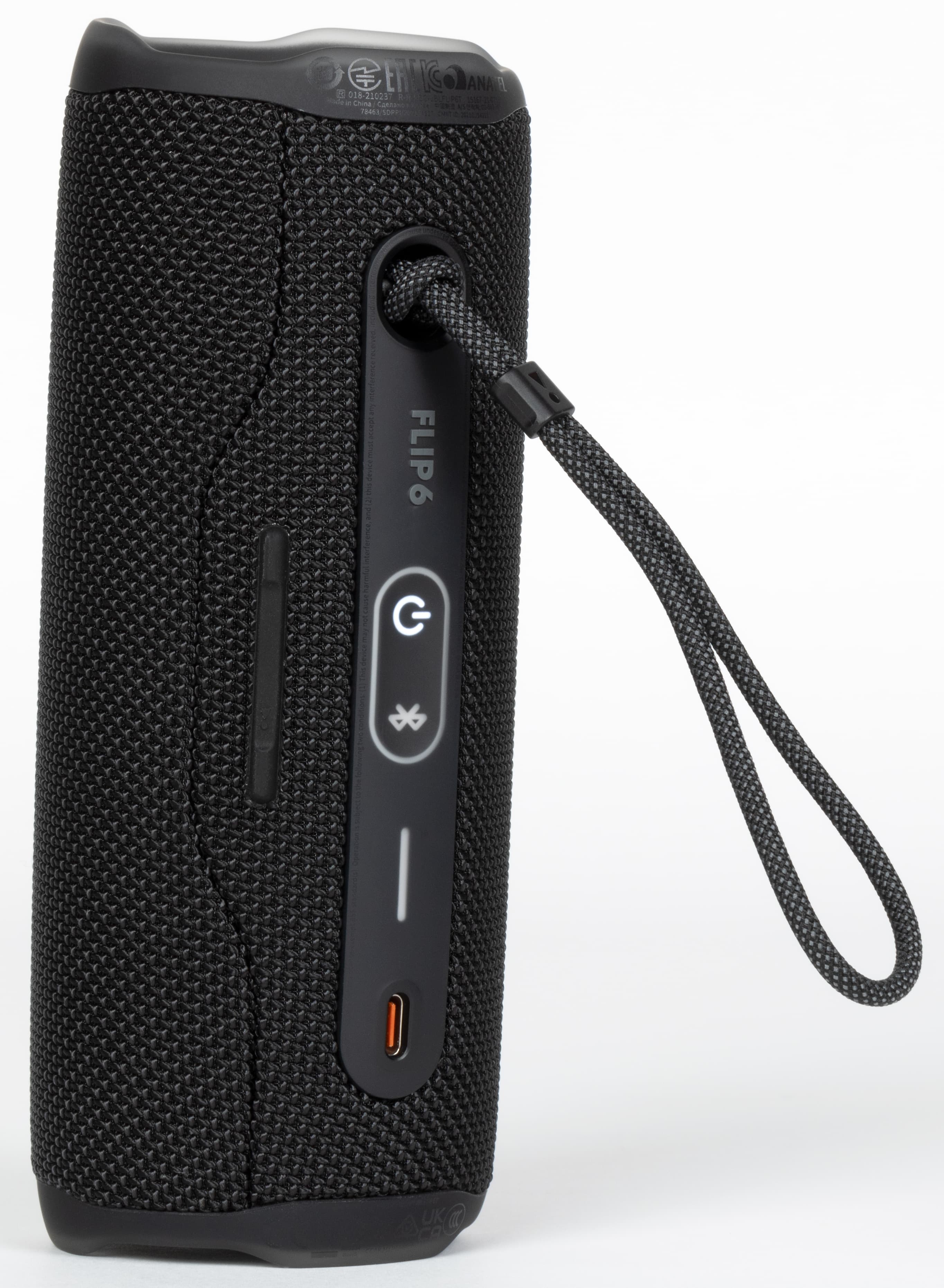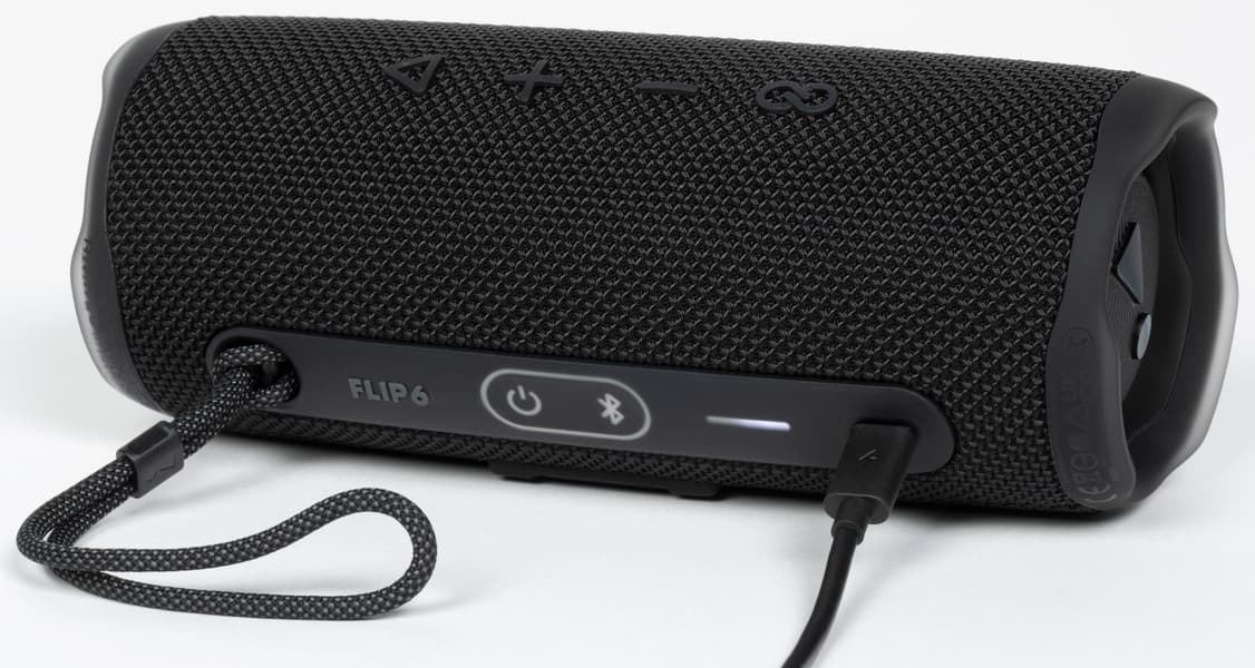 Порт USB-С оснащен защитной системой, которая не позволяет осуществлять зарядку, если внутрь попала вода, и оповещает об этом пользователя звуковым сигналом. Полного заряда аккумулятора, по заявлению производителя, хватает на 12 часов воспроизведения музыки. Но тут всё очень сильно зависит от предпочитаемой пользователем громкости. Запас ее огромен — в небольшой комнате для фонового прослушивания хватает примерно 30 процентов, в таком режиме JBL Flip 6 проработала порядка 14 часов. Так что на заявленные 12 точно можно рассчитывать.