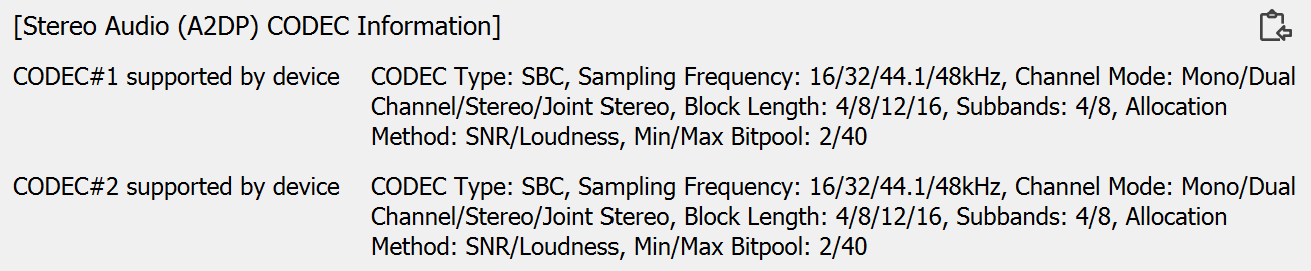 | Поддерживаемые кодеки | SBC | SBC, AAC | SBC | SBC | SBC | SBC | SBC |