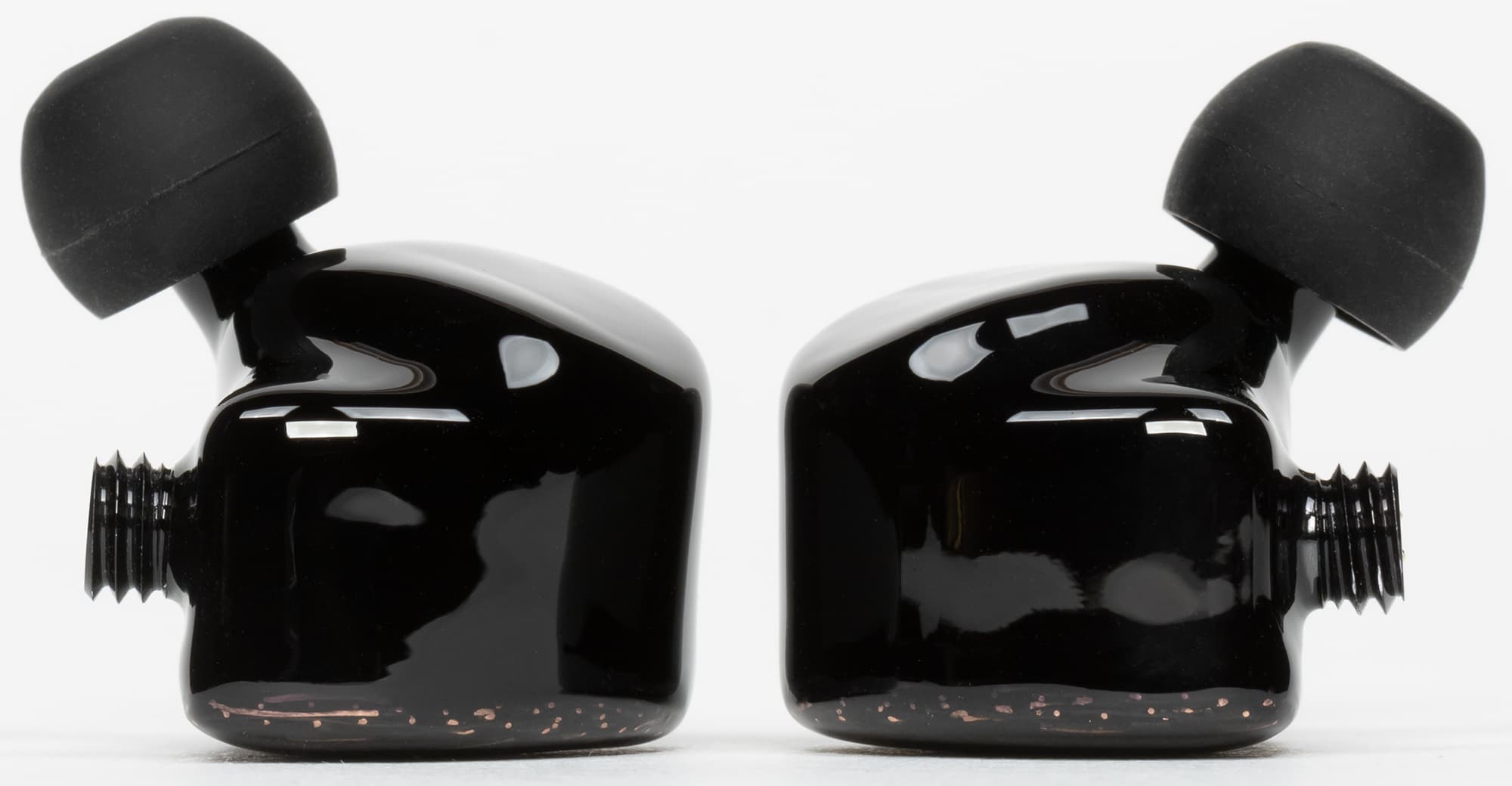 ВЧ-диапазон (от 3 кГц до 20 кГц) воспроизводят четыре арматурных драйвера Quad Balanced Armature. В ухо слушателя звук поступает с помощью технологии FraqPhase — через три раздельных трубки разной длины. Внешне наушники при этом выглядят довольно оригинально, хоть и не слишком броско.