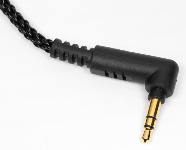 Штекер миниджек (3,5 мм) для подключения к источнику довольно массивный, но не слишком — вполне в рамках разумного. Зато вопросов к его надежности никаких. Плетение у кабеля симпатичное, диаметр в нижней части — 4 мм.