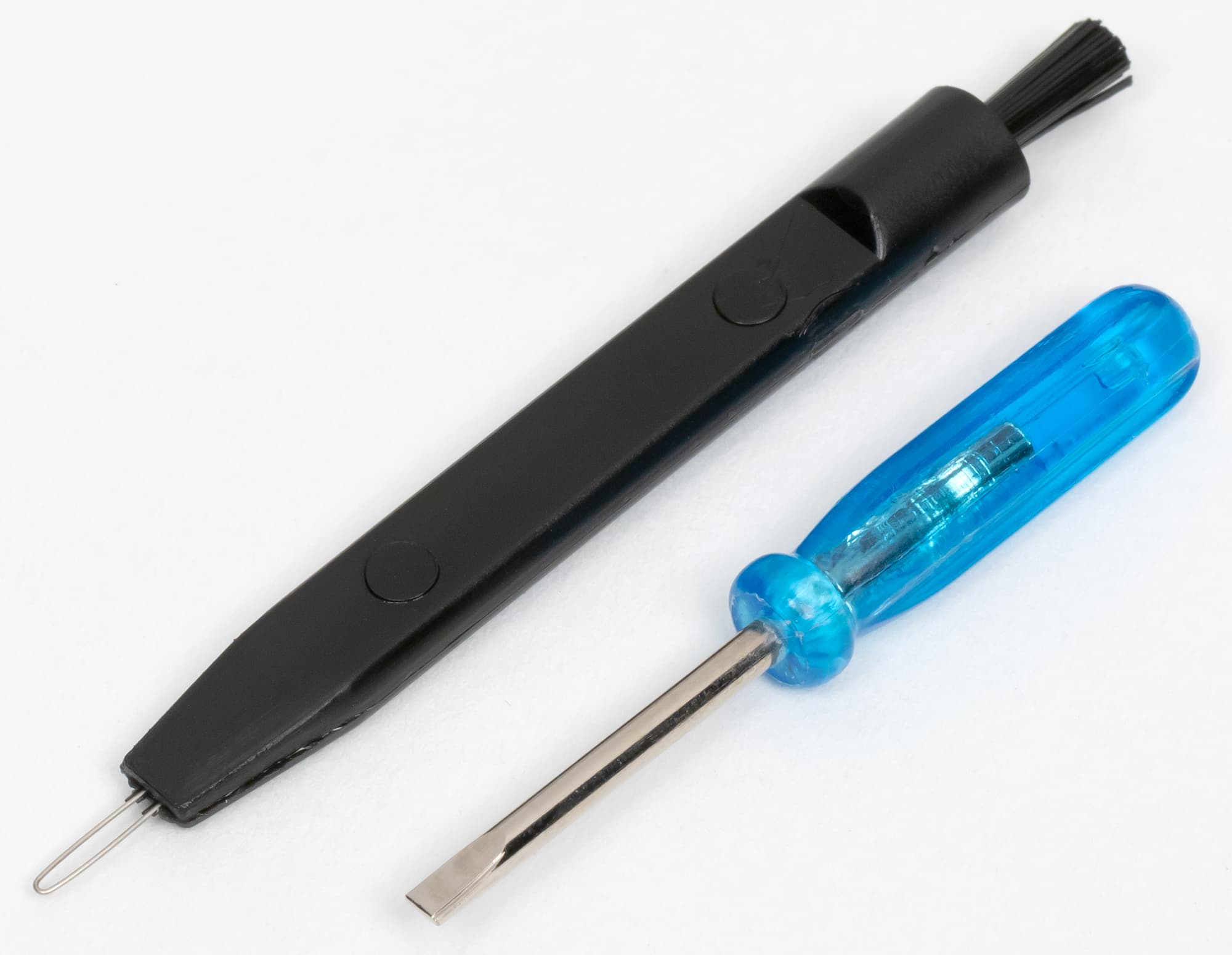 Щеточка для очистки отверстий звуководов и мини-отвертка для вращения регулятора баса довольно простые и незатейливые, но от них многого и не требуются. Есть в комплекте, со своей функцией справляются — вот и замечательно.
