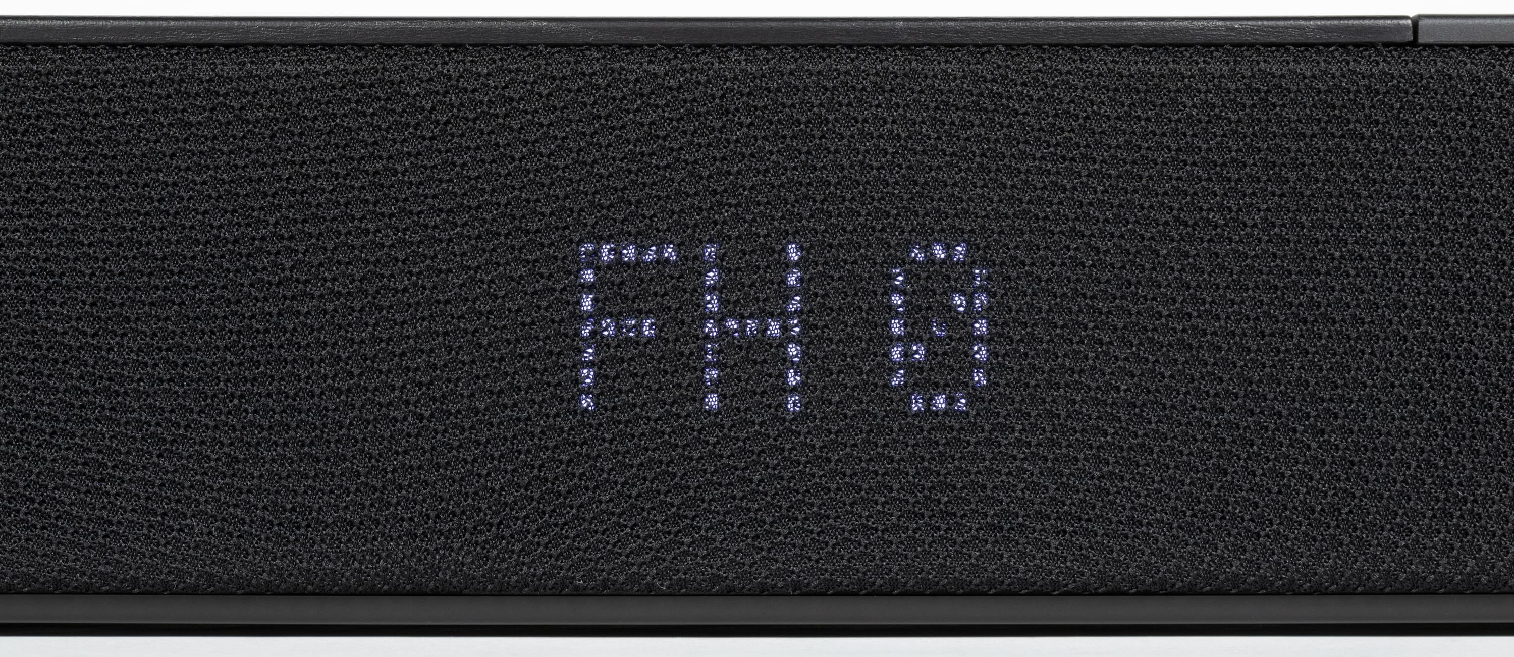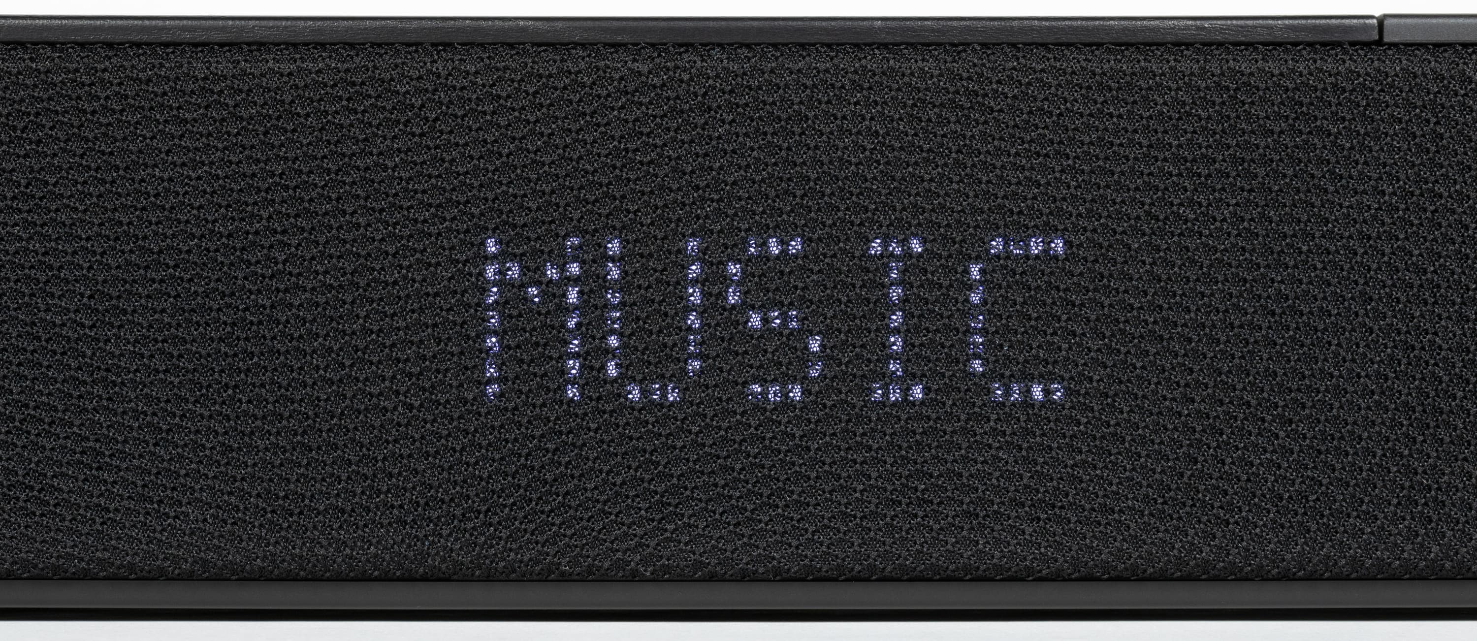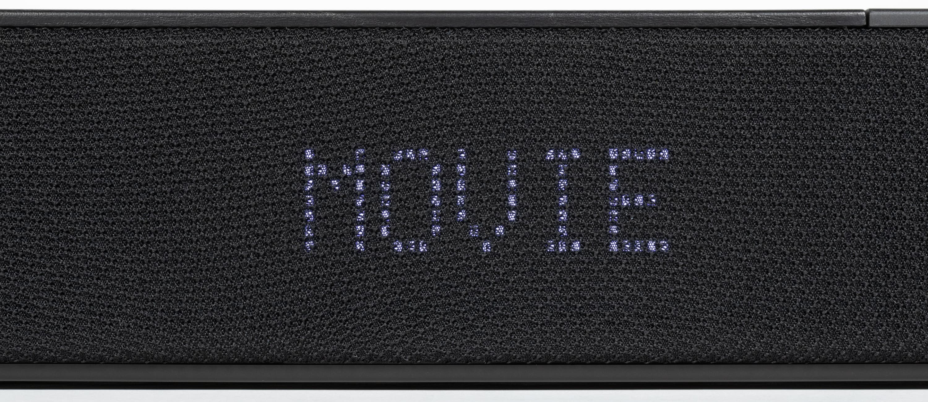По периметру саундбар обтянут звукопрозрачной тканью, на передней панели за ней находятся фронтальные динамики. Все поверхности устойчивы к появлению загрязнений, при необходимости довольно просто очищаются.