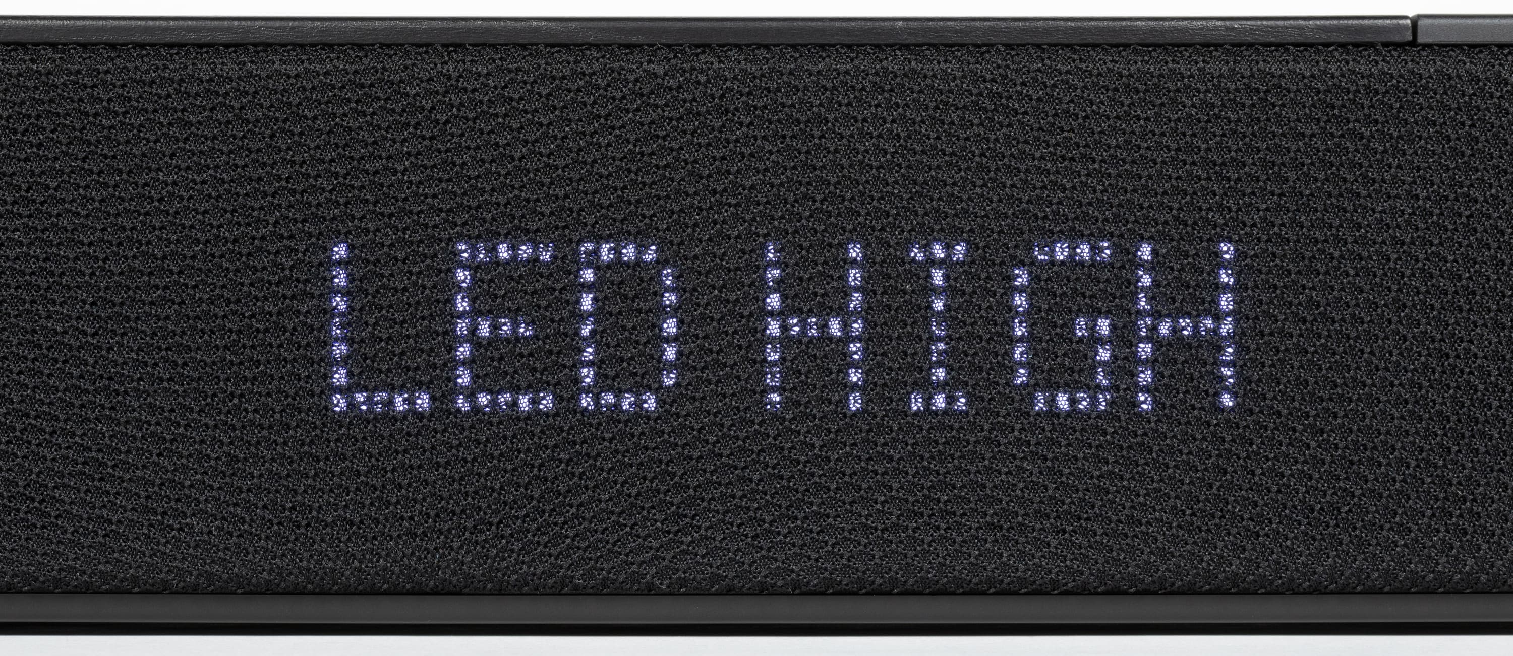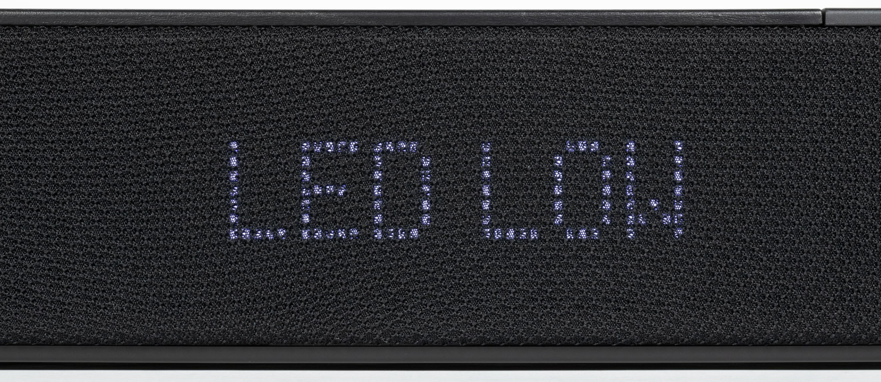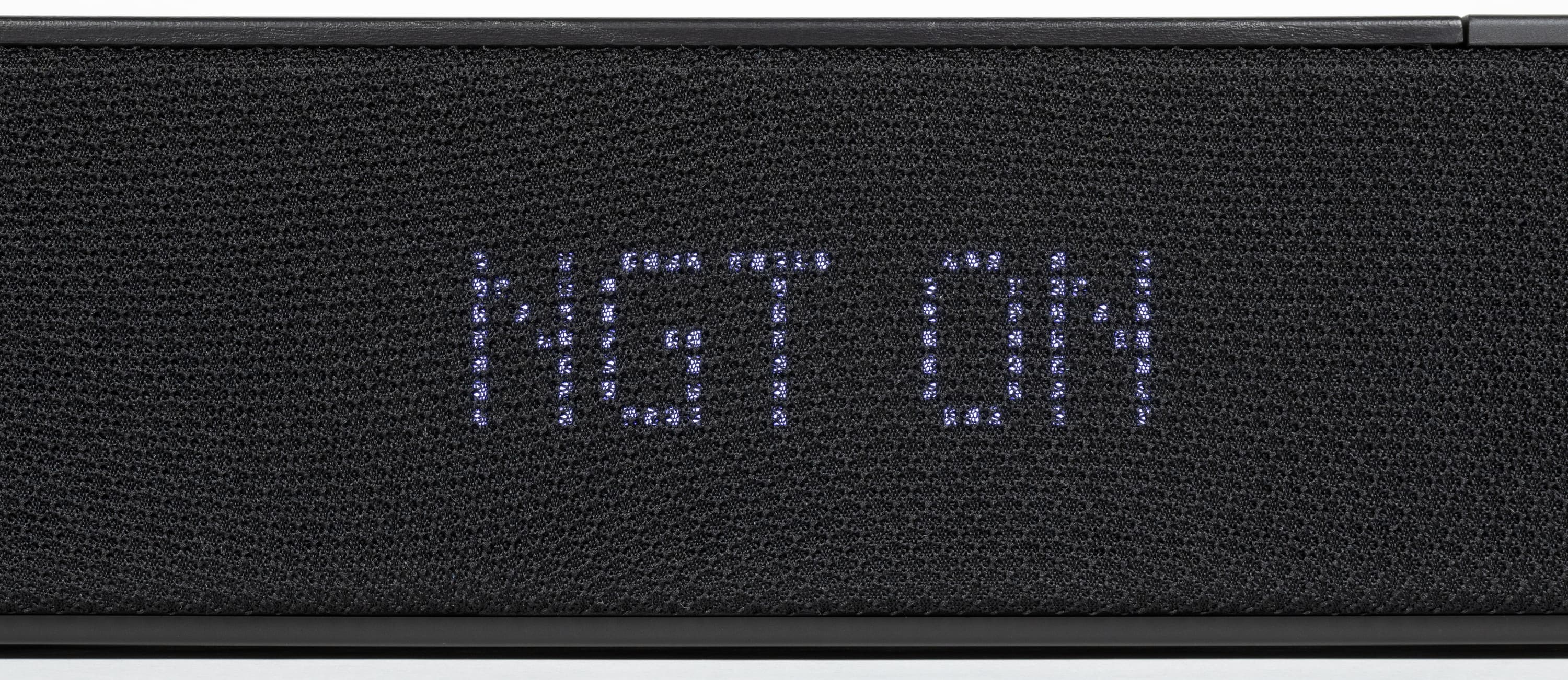 По периметру саундбар обтянут звукопрозрачной тканью, на передней панели за ней находятся фронтальные динамики. Все поверхности устойчивы к появлению загрязнений, при необходимости довольно просто очищаются.