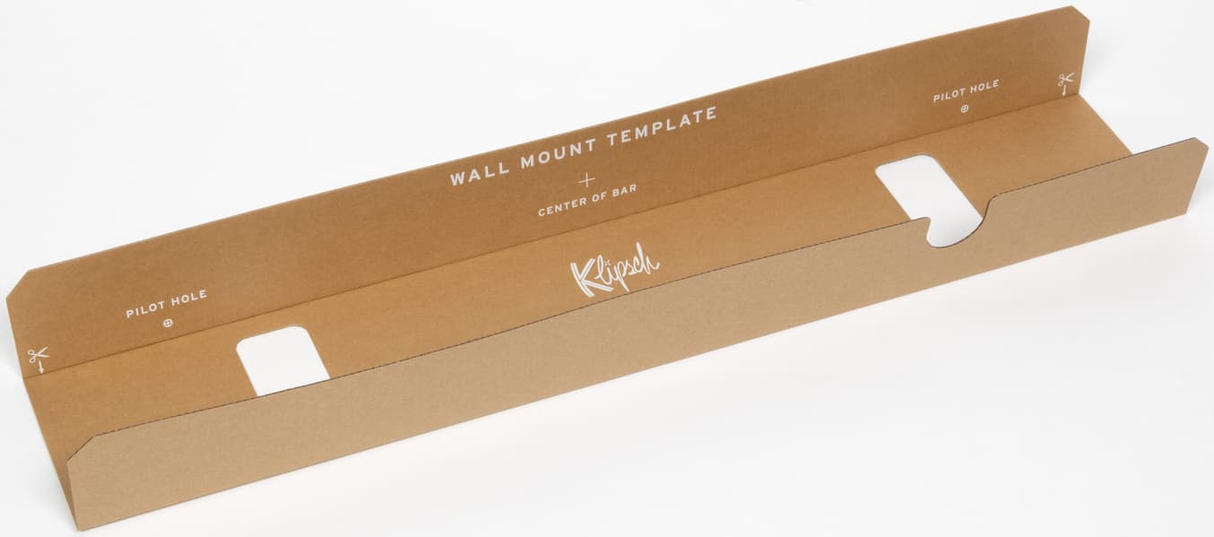 Картонный ложемент, в котором лежит саундбар внутри упаковки, также служит в качестве трафарета для разметки под отверстия, необходимые для крепления кронштейнов.