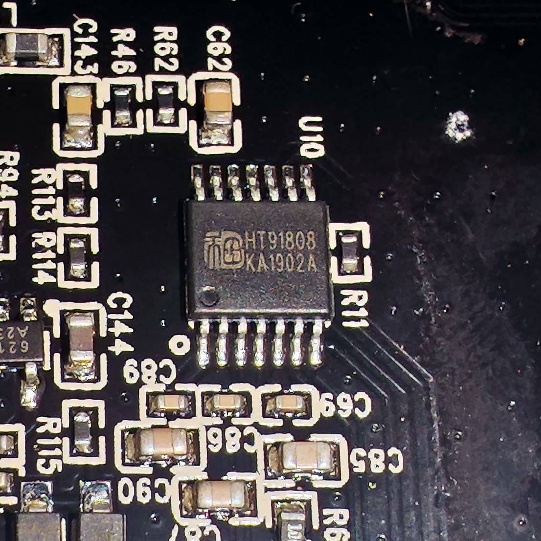 За обработку звука отвечает крайнее широко распространенный аудиопроцессор BP1048B2 с Bluetooth, который мы встречаем в самых разных устройствах, в основном — бюджетных, конечно. Но в случае сабвуфера его возможностей явно достаточно. Собственный АЦП HT91808 производства Shenzhen Yongfukang Technology, по всей видимости, обеспечивает работу с аналоговым входом.