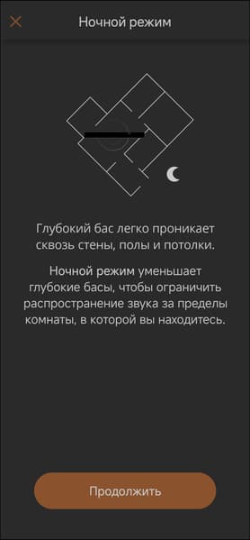 Ночной режим одновременно делает звук потише, убирает бас и «подрезает» ВЧ-диапазон. Смотреть наполненные спецэффектами блокбастеры в таком режиме не имеет особого смысла, а вот если хочется перед сном посмотреть сериал, не разбудив при этом всех вокруг — то, что нужно.