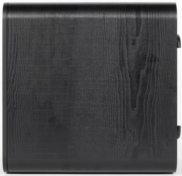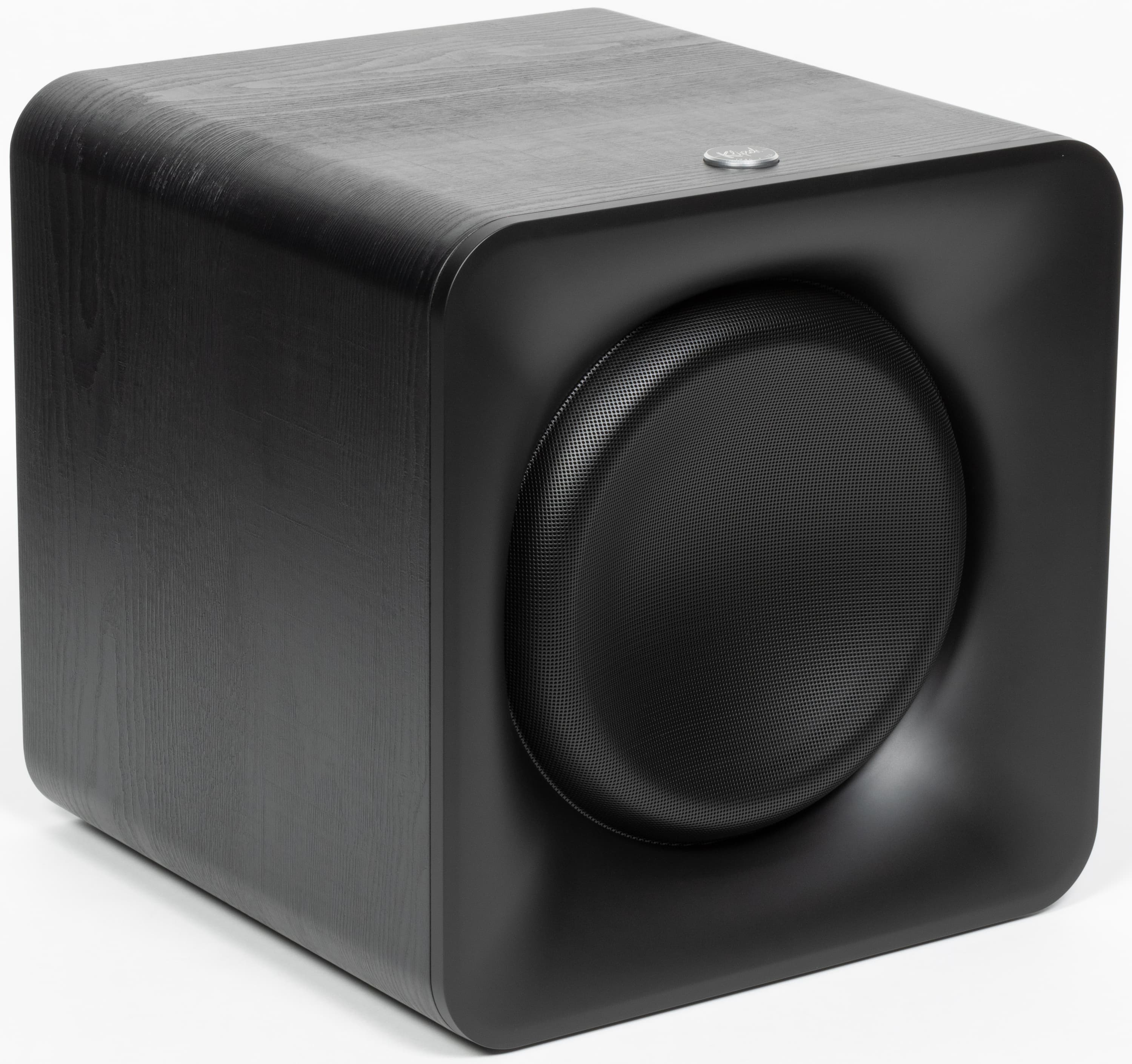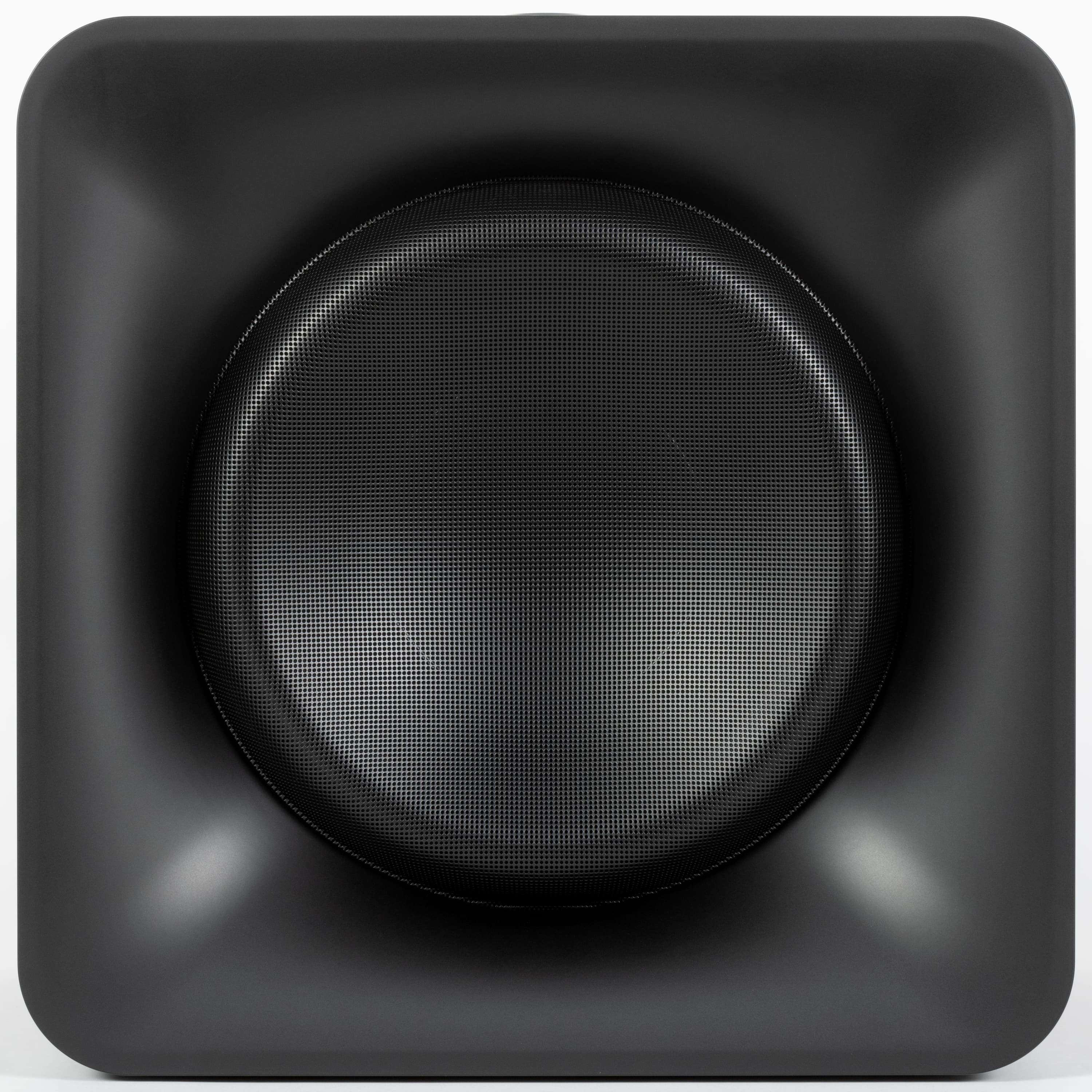 Сабвуфер выполнен в формате «закрытого ящика» — фазоинвертора нет, динамик диаметром чуть более 25 см выведен на переднюю стенку и размещен внутри рупора. Для защиты излучателя предусмотрена несъемная металлическая сетка.