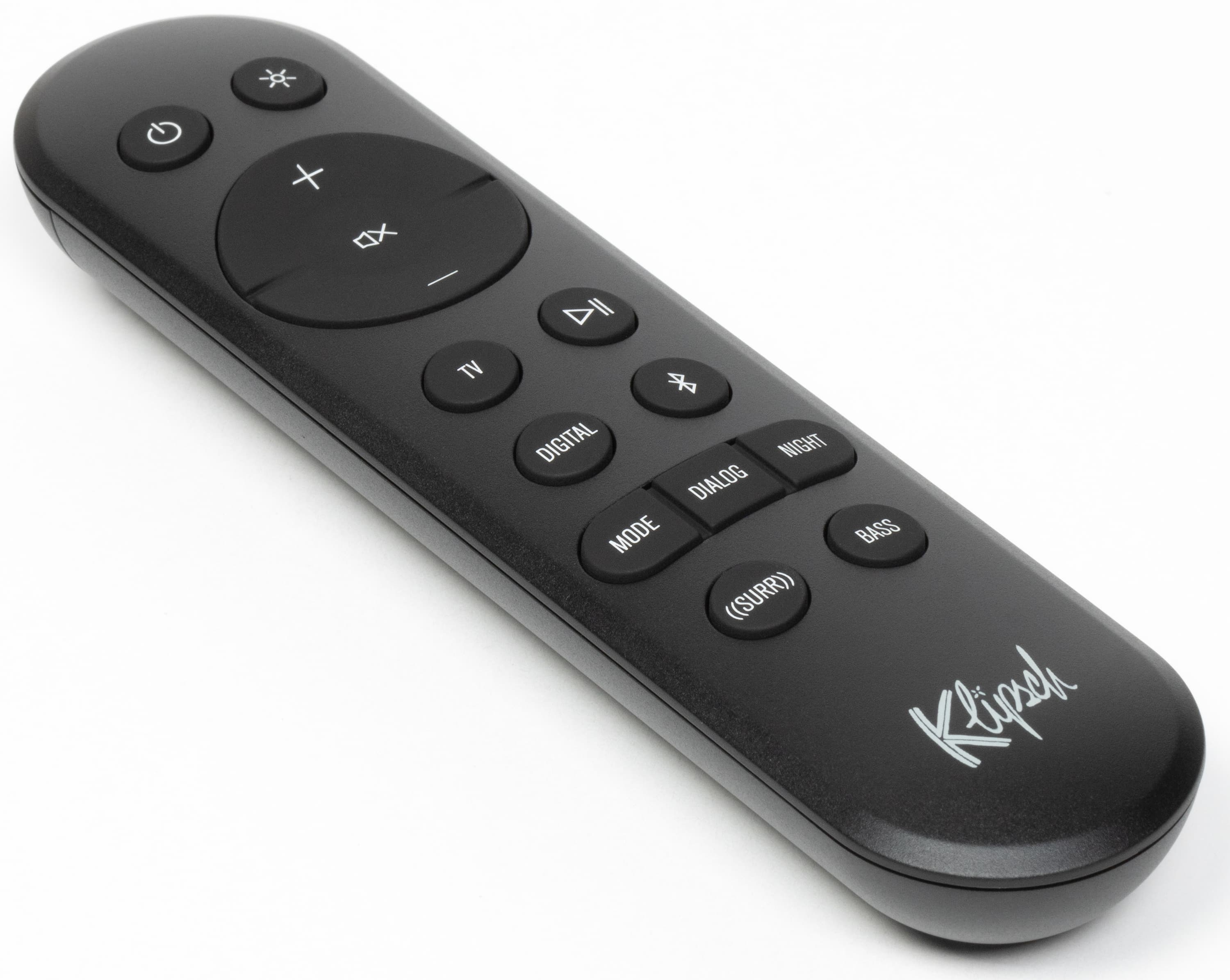 Управлять саундбаром можно несколькими способами, велика вероятность, что многие пользователи предпочтут при повседневной эксплуатации пользоваться ПДУ от других устройств — ТВ или медиаприставки, но собственный пульт у Klipsch Flexus Core 200 тоже имеется. Он позволяет изменить все базовые настройки: громкость, активный вход, профиль звучания. яркость экрана на саундбаре. Есть доступ и к опции изменения баланса громкостей колонок в системе и части настроек темброблока. В руке пульт лежит удобно, клавиши нажимаются очень мягко, но при этом с ощутимым кликом. Кнопки громкости вынесены на «кольцо» в верхней части, их очень легко найти на ощупь.