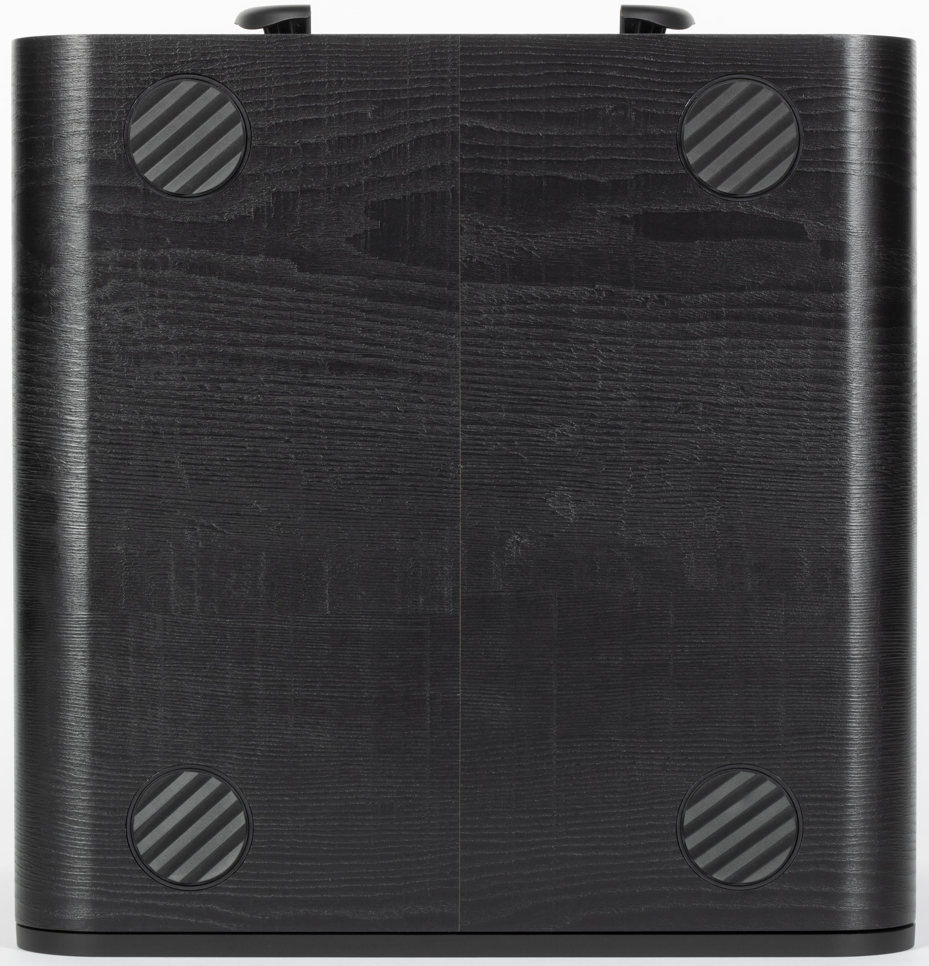 Внешние стороны корпуса из MDF обтянуты черной виниловой пленкой с текстурой «под дерево». К загрязнениям она устойчива, очищается легко.