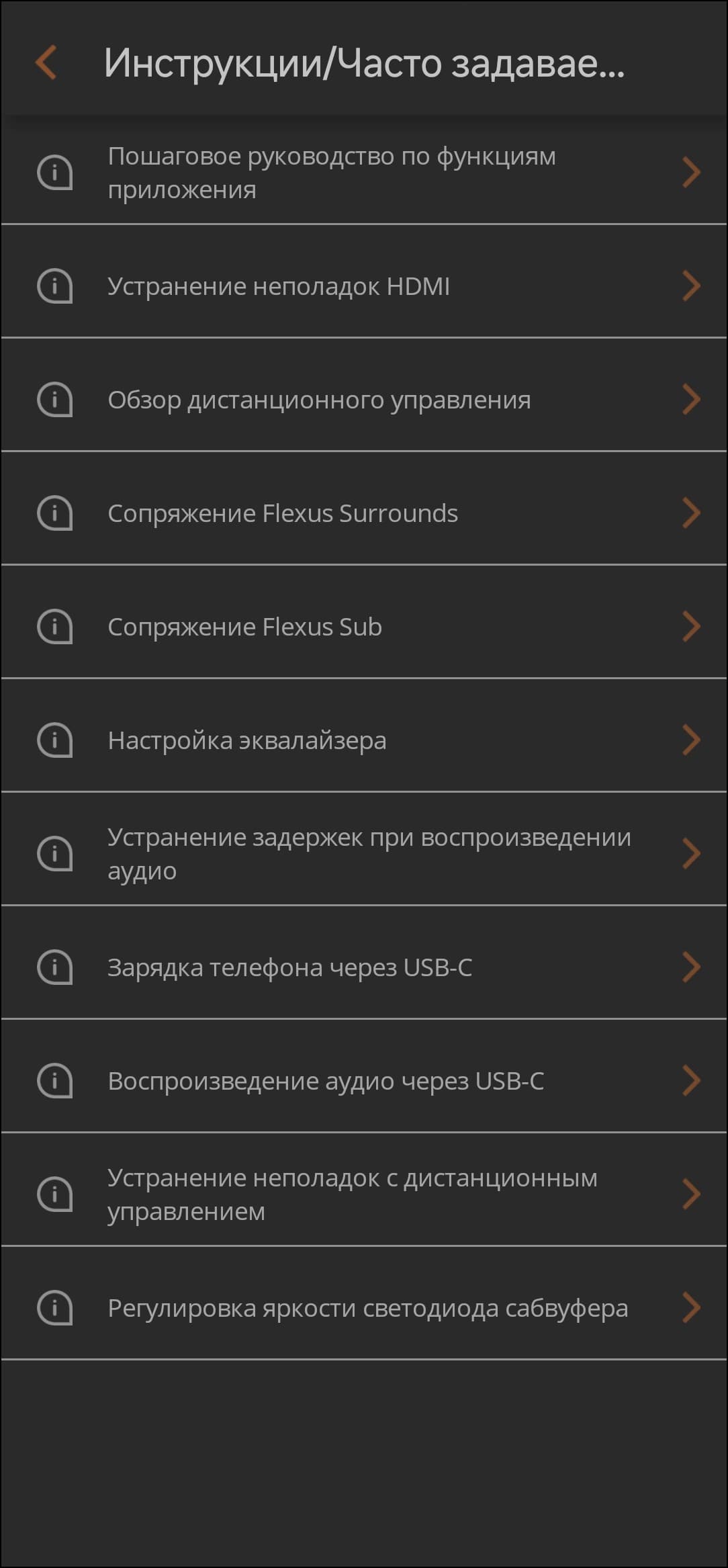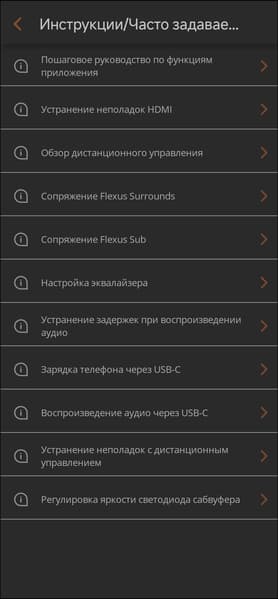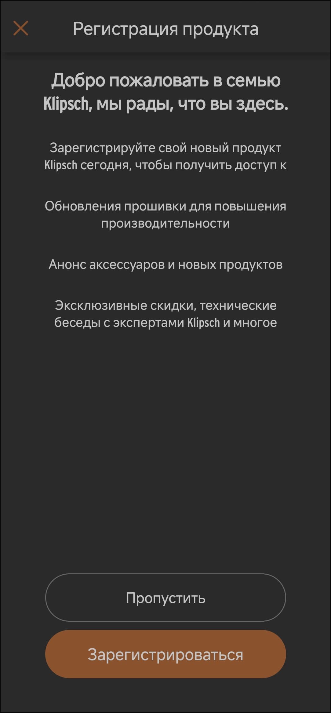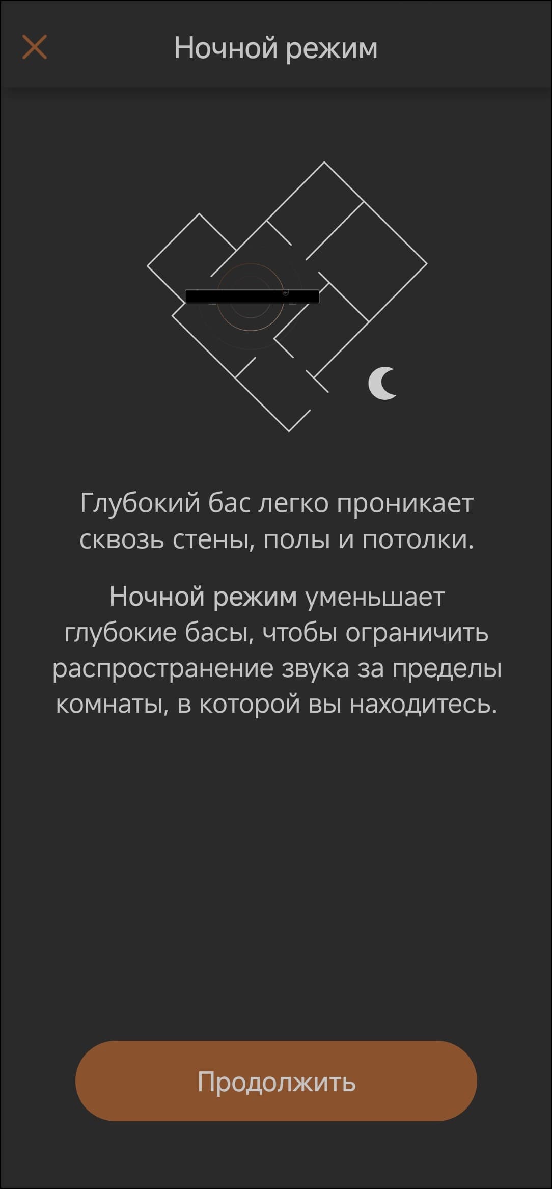 Ну а для всего остального есть Klipsch Connect Plus App. Как мы уже выяснили выше, поддержки Wi-Fi у саундбара нет, для связи с приложением используется Bluetooth-подключение. Видимо поэтому изменение настроек происходит слегка неспешно. Но не настолько, чтобы это стало серьезной проблемой. После установки ПО предлагает небольшой гайд, в ходе изучения которого можно сразу сделать основные настройки.