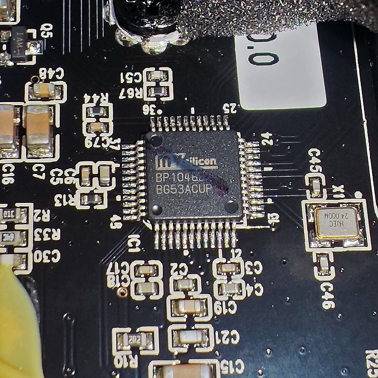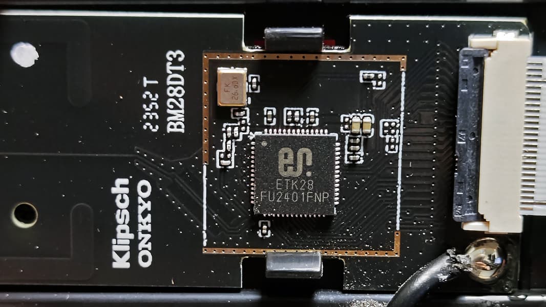 Модуль Bluetooth традиционно прикрыт наклеечкой, под которой обнаруживается ATS2835P производства тайваньской же Brito Technology. Судя по даташиту, он обеспечивает саундбару поддержку Bluetooth 5.0.