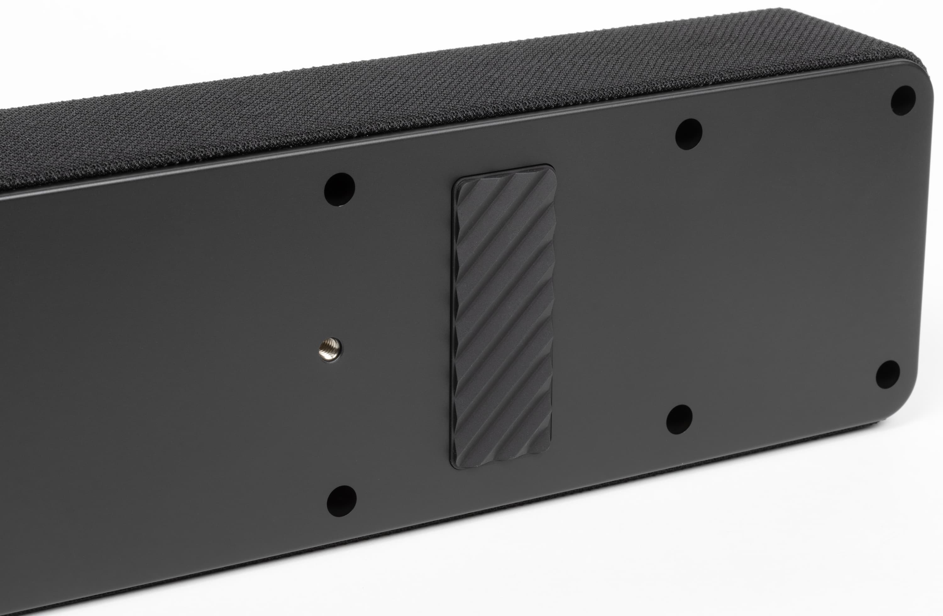 Ножки имеют сравнительно большую площадь и небольшую высоту. Им вполне по силам обеспечить устойчивое размещение саундбара на горизонтальной поверхности, ну и заодно поглотить малую часть нежелательных вибраций при работе устройства.