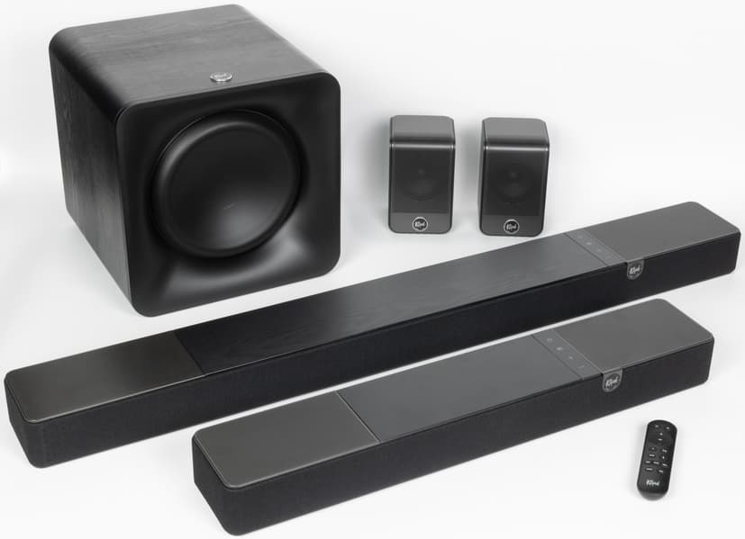 Со звуками, идущими из-за спины пользователя, традиционно плохо справляются все саундбары — даже самые лучшие и дорогие. В наиболее «продвинутых» этот вопрос решается за счет отраженного от стен и потолка звука с правильно выставленными задержками, которые рассчитываются системами автонастройки. Получается сложно, дорого и не всегда так эффективно, как хотелось бы. Более простой и надежный путь — разместить сзади две небольших колонки, вот по нему-то и пошли разработчики Klipsch Flexus. То есть по сути комплект устройств семейства — это полноценная система 5.1 с соответствующими возможностями, на которые накладываются дополнительные «способности» саундбара, делающие звучание еще более захватывающим.