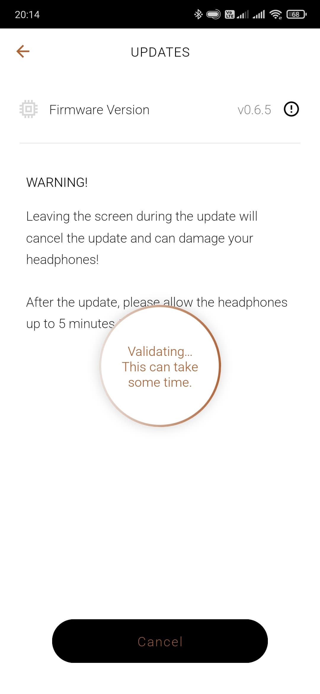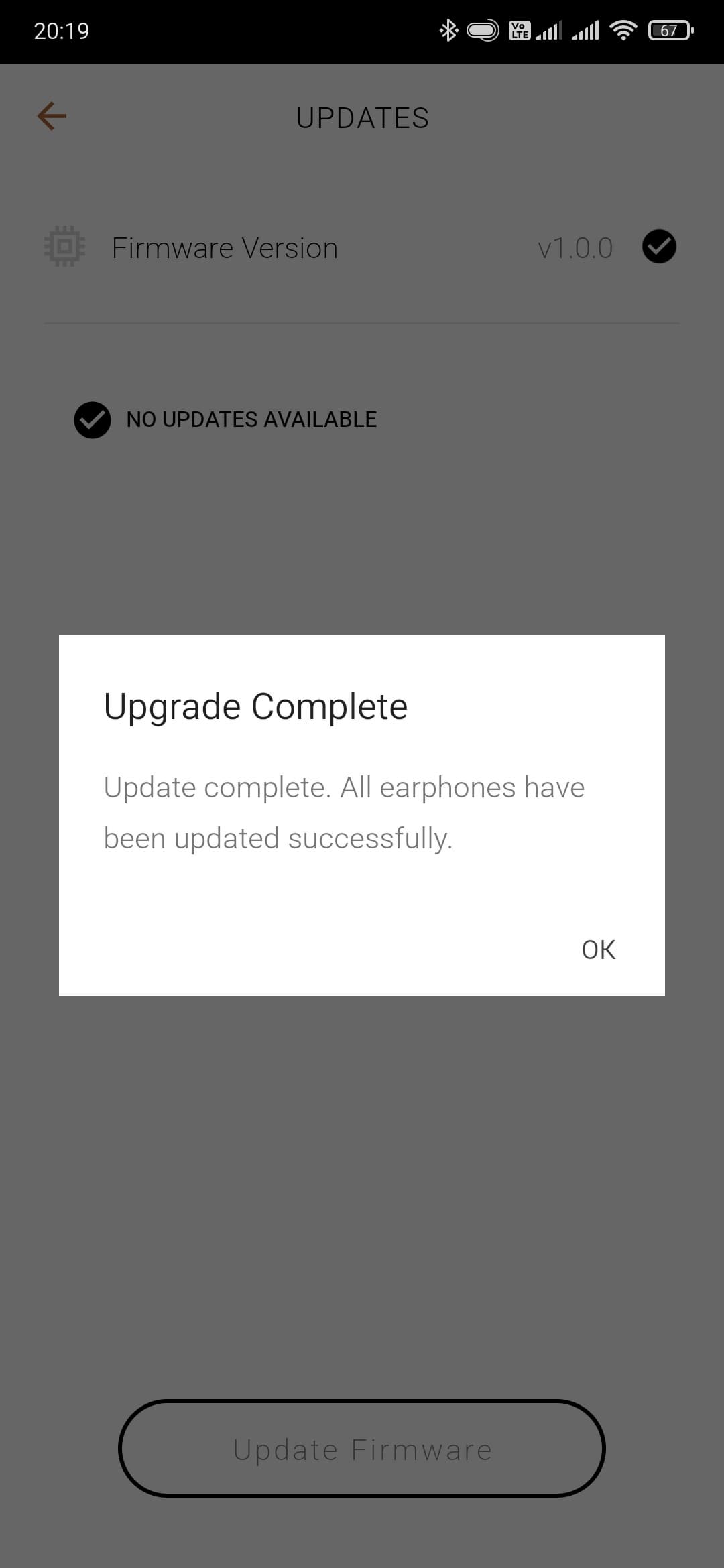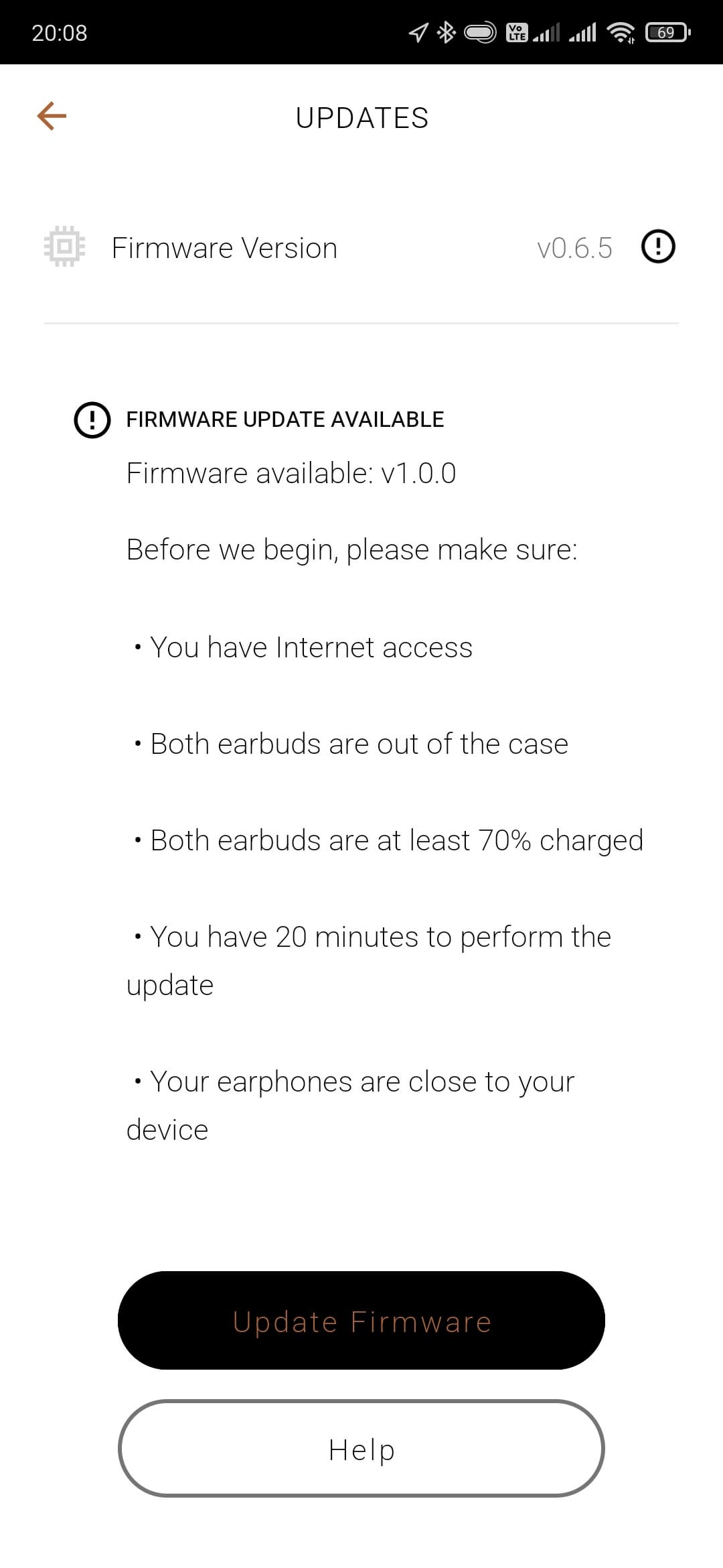 На главном экране отображается заряд каждого из наушников, а вот кейса — нет. Там же можно найти кнопки перехода на страницы с различными опциями и функциями, о которых мы поговорим чуть ниже. А пока идем на страницу настроек, где видим, что для прошивки наушников есть обновление — им и займемся в качестве финальной стадии подключения. Перед началом процедуры приложение предупреждает, что надо запастись временем и терпением — процесс занимает около 20 минут. Примерно столько и получилось при тестировании, так что да — этот нюанс стоит иметь в виду.