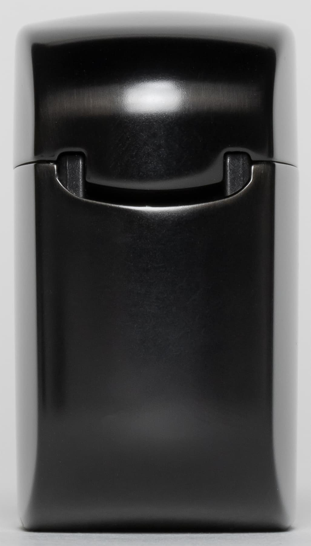 По аналогии с Zippo так и хочется открыть крышку футляра одним движением большого пальца с тем самым резким кликом, который знаком всем обладателям этих зажигалок. Но нет, открывается кейс совсем не так, движение крышки очень мягкое, доводчика нет. Фиксация в открытом положении при этом имеется, пользоваться кейсом вполне удобно. За движение крышки отвечает расположенная на боковой поверхности петля, под крышкой спереди виднеются три светодиода, демонстрирующие уровень зарядки встроенного аккумулятора.