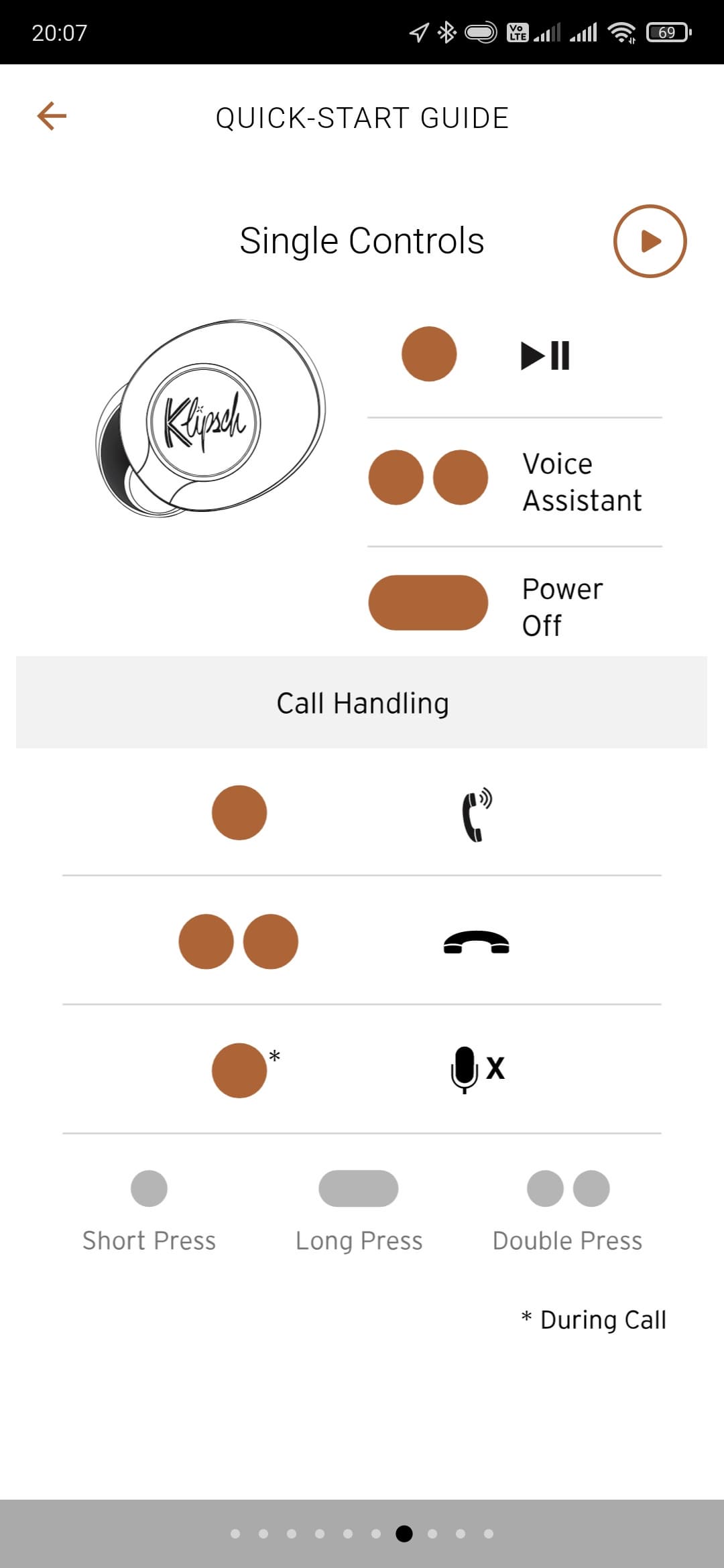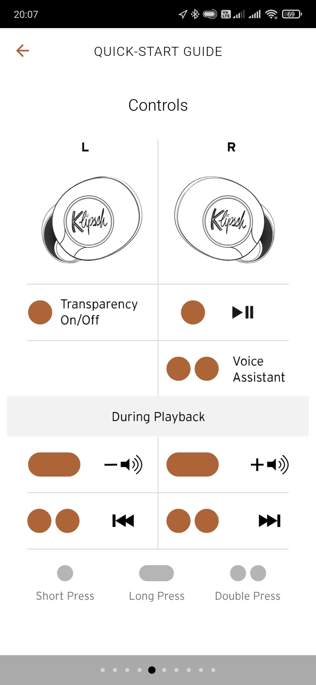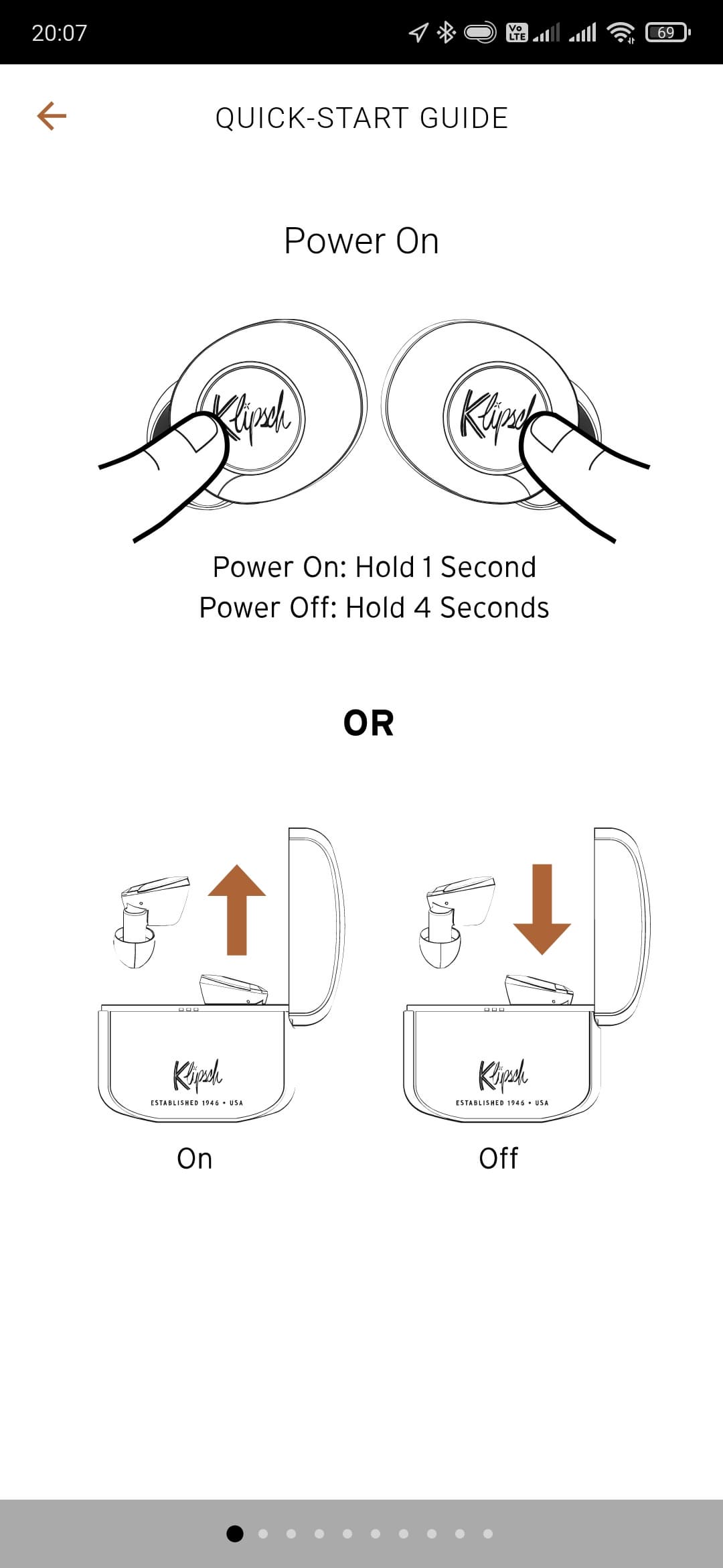 Под занавес Klipsch Connect App предлагает познакомиться с краткой инструкцией, на которую действительно стоит бросить хотя бы беглый взгляд. Она, как и приложение в целом, доступна только на английском языке, но разобраться можно даже с базовым его знанием — картинки помогут. Там есть информация о настройке, управлении, правильном ношении наушников — в общем, много всего полезного.