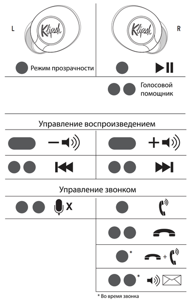 При этом c их помощью можно не только управлять воспроизведением, но и включать «режим прозрачности» вызывать голосового ассистента и даже изменять громкость. Возможности настройки управления нет, но за все время тестирования у нас не возникло желания что-то изменить, профиль управления вполне «классический». Дабы избежать долгого описания функций всех вариантов нажатия клавиш, просто посмотрим на иллюстрацию из инструкции.