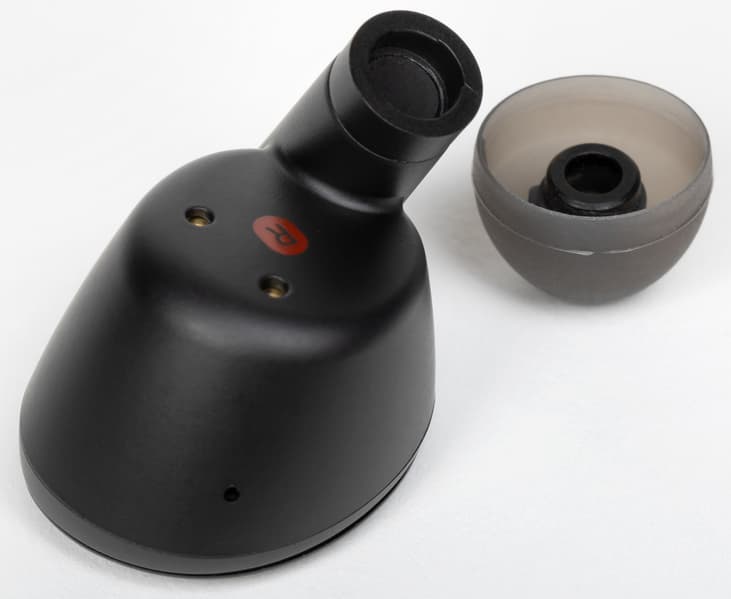 Сопло звуковода узкое и сравнительно длинное, а внутренняя часть корпуса имеет эргономичную форму, призванную обеспечить хорошую опору на полость ушной раковины.