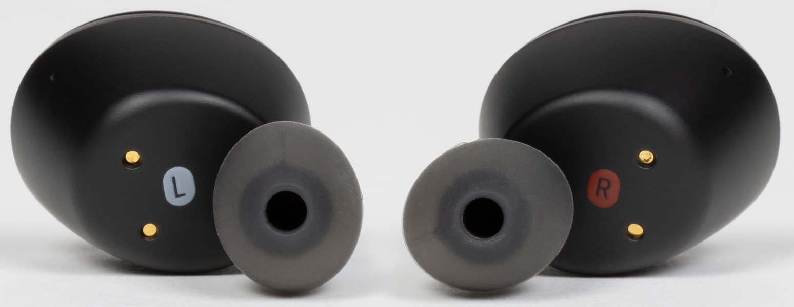 А терять силиконовые насадки точно не стоит — они проприетарные и подобрать замену будет сложно. В отличие от большинства известных нам амбушюров они не обхватывают носик звуковода сверху, а помещаются вовнутрь. Каждый из размеров промаркирован своим цветом сердечника, что удобно и позволяет быстро сориентироваться при замене.