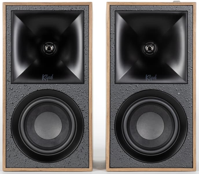 Наиболее эффектно Klipsch The Fives смотрятся вообще без грилей — рупор сверху, открытый динамик снизу и интересная фактура передней панели создают очень притягательный образ.