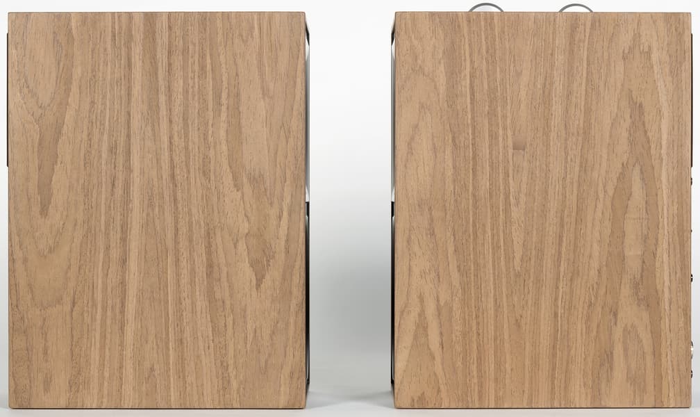 Корпус колонок выполнен из MDF и, судя по описанию производителя, покрыт натуральным шпоном. К появлению пятен от прикосновений поверхность устойчива, очистке поддается хорошо.
