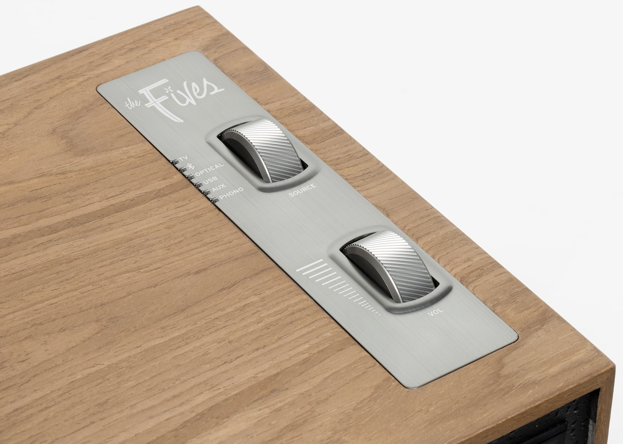 Аналоговый вход на RCA-разъемах может использоваться как для получения линейного сигнала, так и для подключения винилового проигрывателя — в акустике есть встроенный фонокорректор. Есть и вход Aux через миниджек. Цифровые варианты подключения представлены оптическим S/PDIF и USB — собственный ЦАП в Klipsch The Fives тоже имеется. Даже Bluetooth-подключение предусмотрено, причем с поддержкой «продвинутых» кодеков.