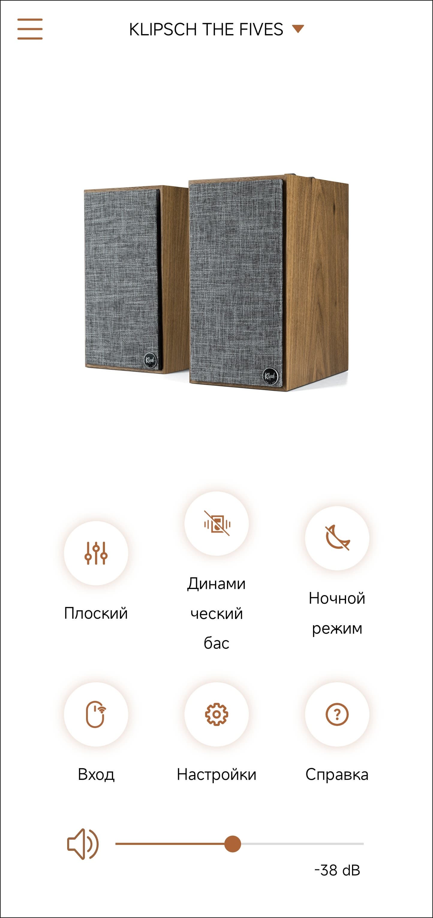 Далее управление и обновление прошивки Klipsch The Fives может осуществляться с помощью ПО Klipsch Connect, о котором мы уже как-то говорили. Устанавливаем, даем необходимые разрешения. Сразу отметим, что работает ПО только тогда, когда колонки подключены посредством Bluetooth, плюс на момент тестирования делало оно это не очень стабильно — периодически «отваливалось» и не сохраняло настройки. Уверены, что со временем все будет исправлено, но пока сильно рассчитывать на него не приходится. Благо, что и особой необходимости в этом нет, акустика явно больше рассчитана на проводное подключение, а других возможностей управления достаточно для комфортного использования.