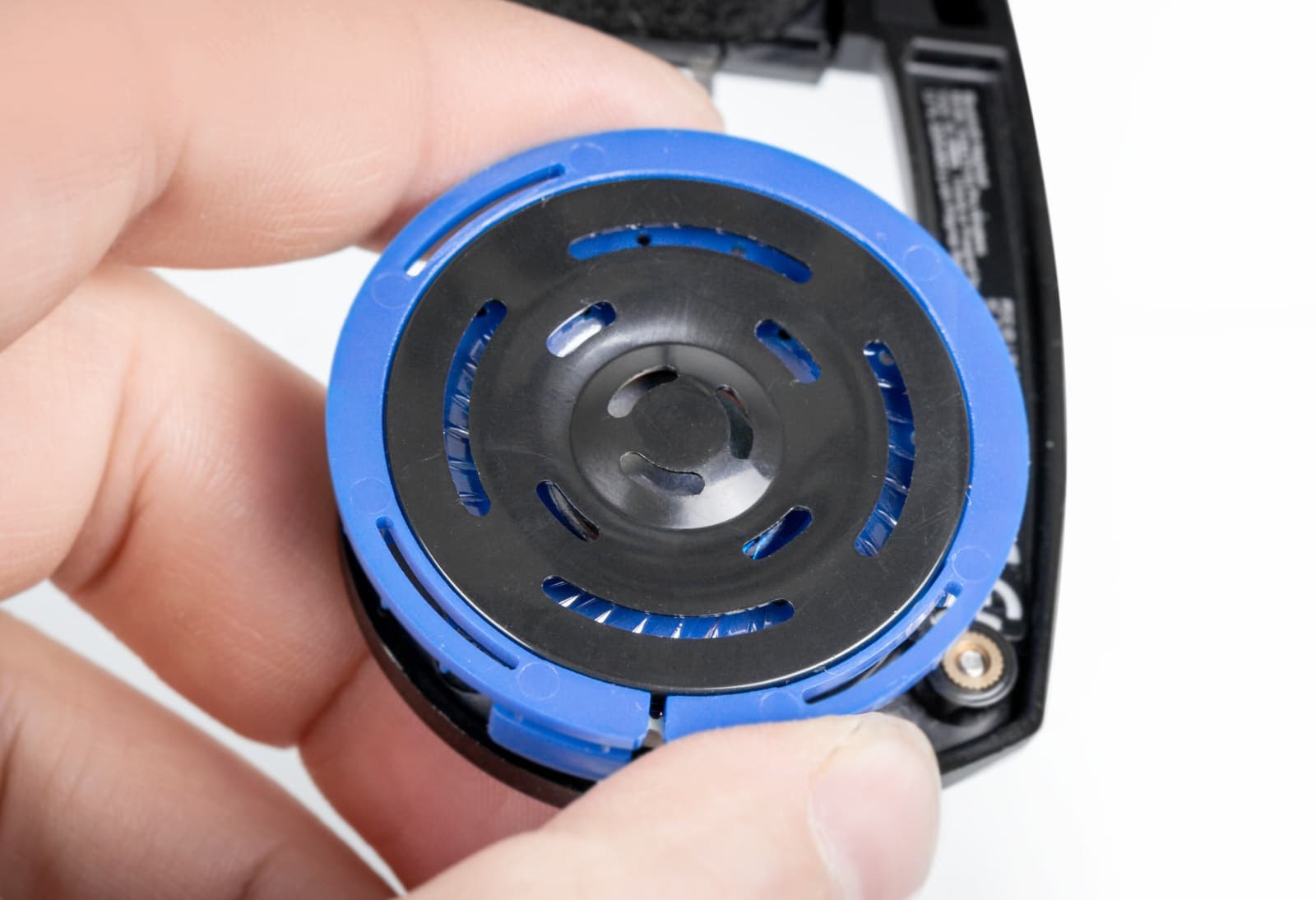 Наушники Koss Porta Pro Wireless имеют открытую конструкцию, задняя часть чашки имеет множество отверстий. Здесь используется мембрана максимально допустимого размера, ее диаметр составляет 38 мм. Сама мембрана от механических повреждений закрыта пластиковой решеткой. Заявленная чувствительность для накладных наушников довольно приличная, 111 дБ.
