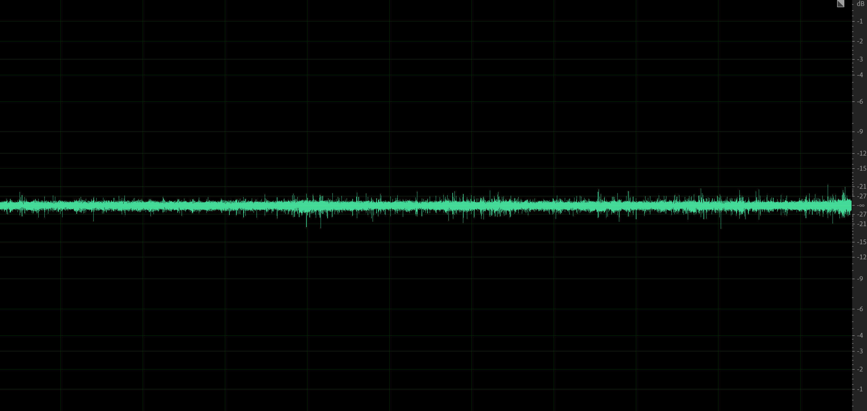 Первое, что стоит отметить — сигнал явно выше. То есть вместо положенных 33⅓ оборота в минуту проигрыватель выдает 34 с небольшим. Есть и заметное дрожание, да и «плавает» звук периодически настолько сильно, что это можно заметить даже при прослушивании музыки. При этом регулировки скорости вращения не предусмотрено — исправить что-либо нельзя. Просто для иллюстрации покажем, как выглядит подобный сигнал, полученный от цифрового источника.