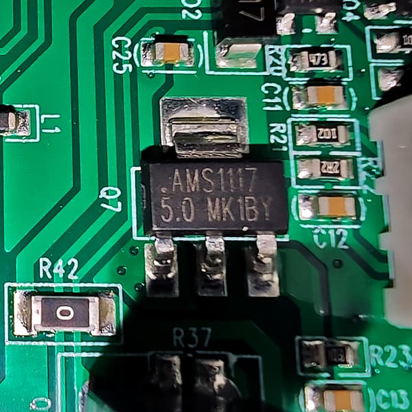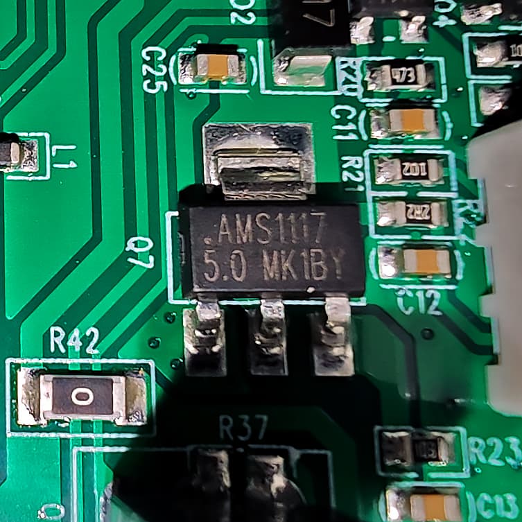 Ну и напоследок посмотрим на регулятор напряжения (AMS1117 производства Advanced Monolithic Systems) и операционный усилитель, для которых также справедливо все сказанное выше.