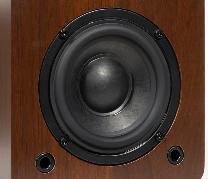 Диаметр нижнего динамика, отвечающего за воспроизведение баса и средних частот — 4 дюйма, то есть чуть больше 10 см.