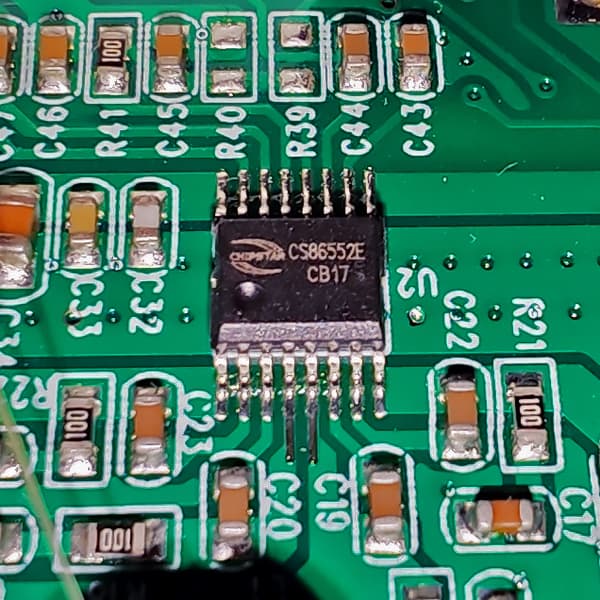 По всей видимости, Chipstar CS86552E CB17 — это усилитель класса D. Решение начального уровня, честно говоря, в устройстве рассматриваемого ценового сегмента хотелось бы увидеть что-нибудь более «продвинутое». Но со своей задачей он при этом справляется и вполне соответствует общему уровню системы.