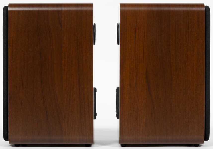 Решетки съемные, удерживаются с помощью пластиковых штифтов. Снять и поставить их на место можно без лишних проблем, однако штифты довольно тонкие и требуют бережного обращения. С открытыми динамиками колонки традиционно выглядят несколько более эффектно.
