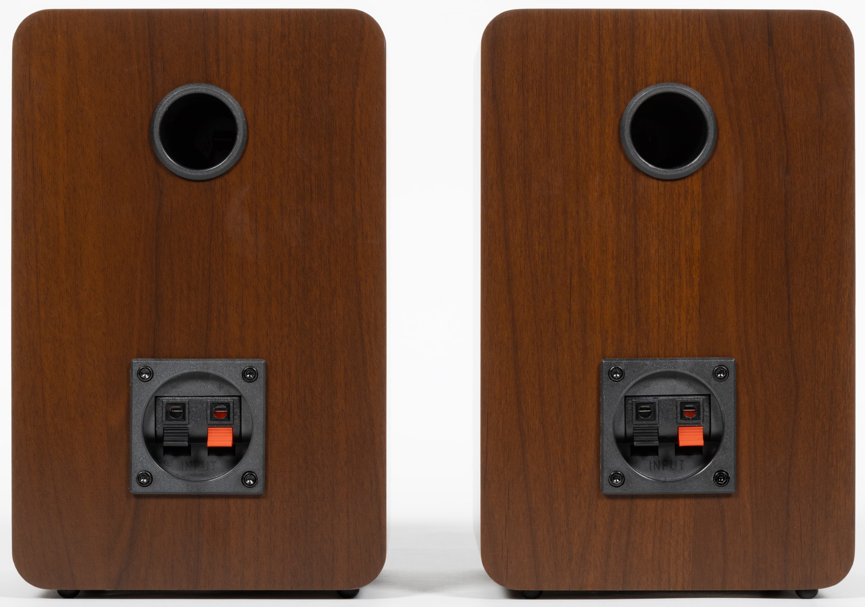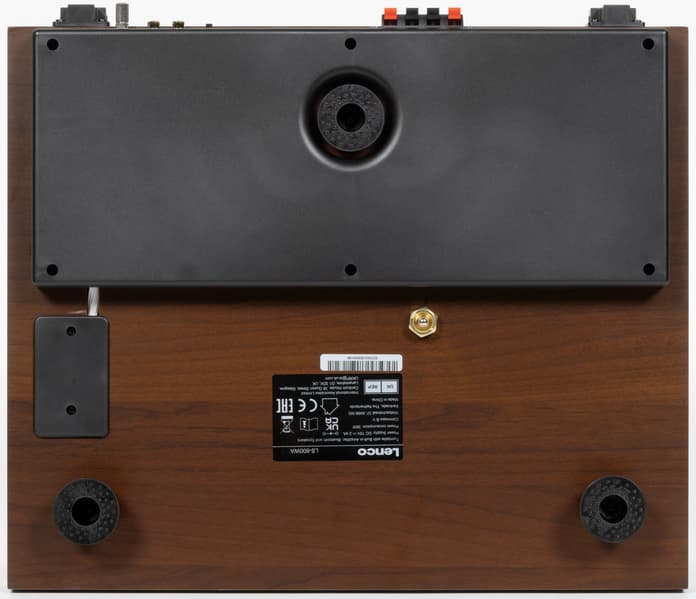 На задней стенке находятся отверстия фазоинверторов и клеммы для подключения акустики к размещенному в проигрывателе усилителю.