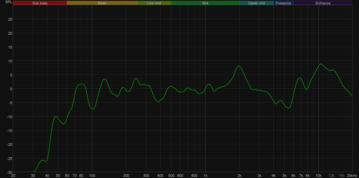 Ожидать «глубокого баса» от столь небольших колонок явно не стоило, звучат где-то от 70 Гц — уже неплохо. Бас немного «гудит» на частоте настройки фазоинвертора, плюс есть резонансы корпуса ниже — от них помог бы избавиться демпфирующий материал внутри колонок, но его нет.