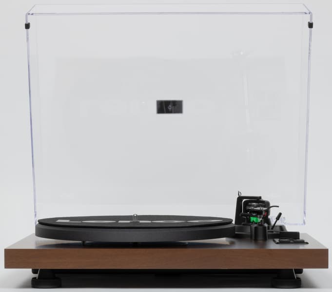 Крышка съемная, на внешней части размещен логотип производителя. С открытой проигрыватель выглядит более эффектно, зато с закрытой в него попадает меньше пыли.