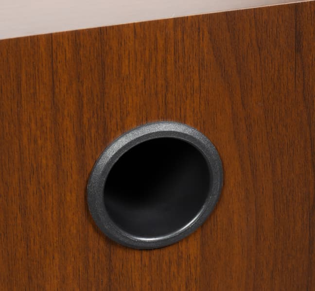 Отверстие фазоинвертора выведено на задние стенки колонок, диаметр сравнительно небольшой — 30 мм.