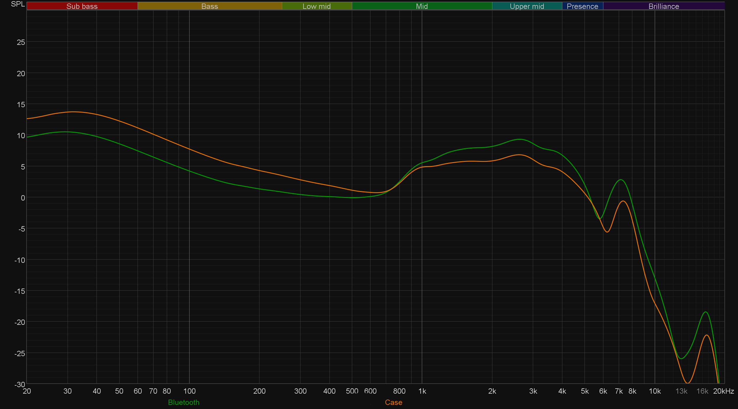 При подключении с использованием кейса в качестве Bluetooth-адаптера профиль звучания чуть меняется, но не критично — все ключевые особенности остаются на месте. При выборе типа подключения как всегда стоит ориентироваться на собственный комфорт и сценарий использования устройства.